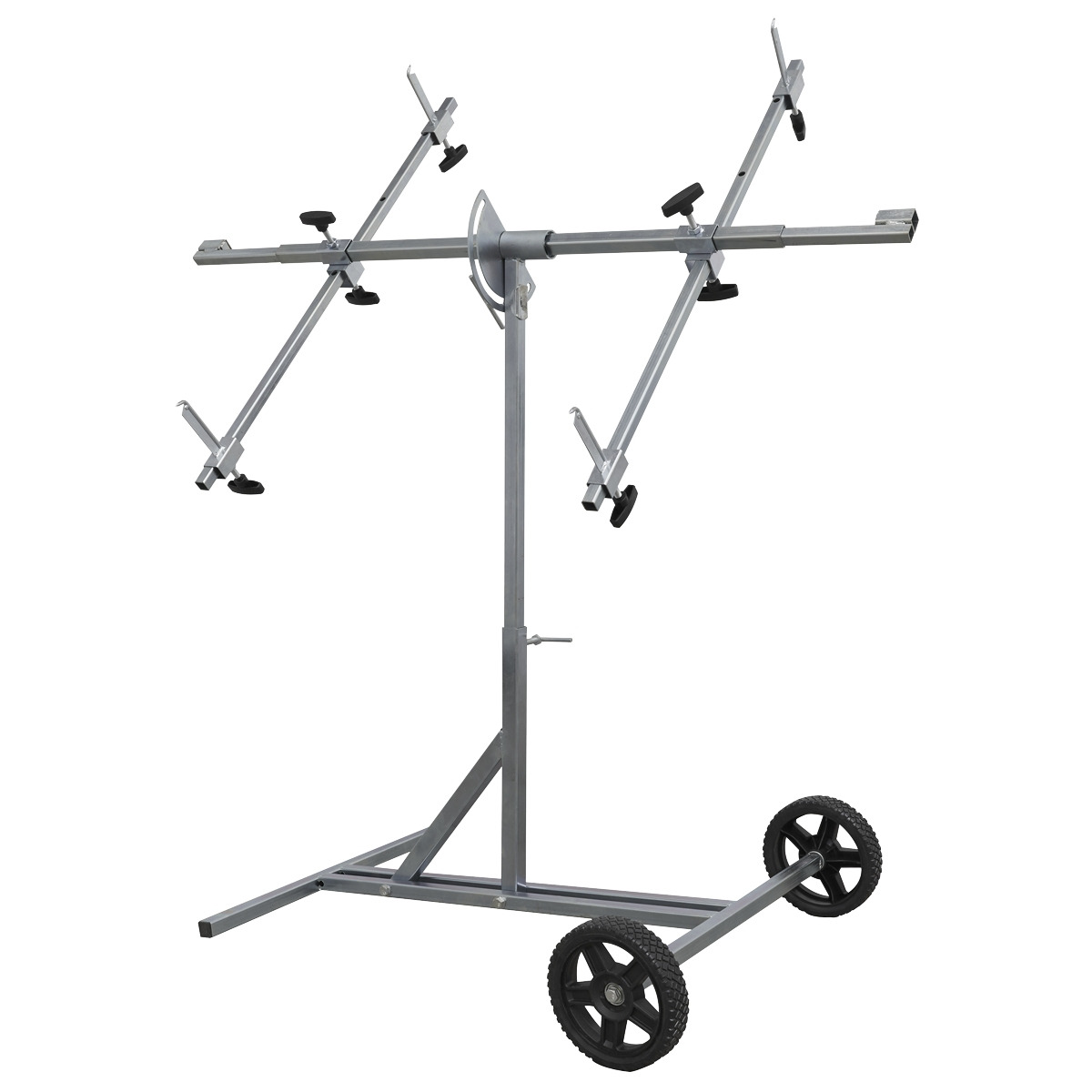Compact design, yet can handle the larger bonnets, tailgates etc. Ideal for doors, bonnets, bumpers, wings and spoilers. Fully adjustable, rotates full 180°. Adjustable and rotating bars make this stand suitable for almost all panel types. Portable for easy manoeuvring of application from preparation to spray booth.