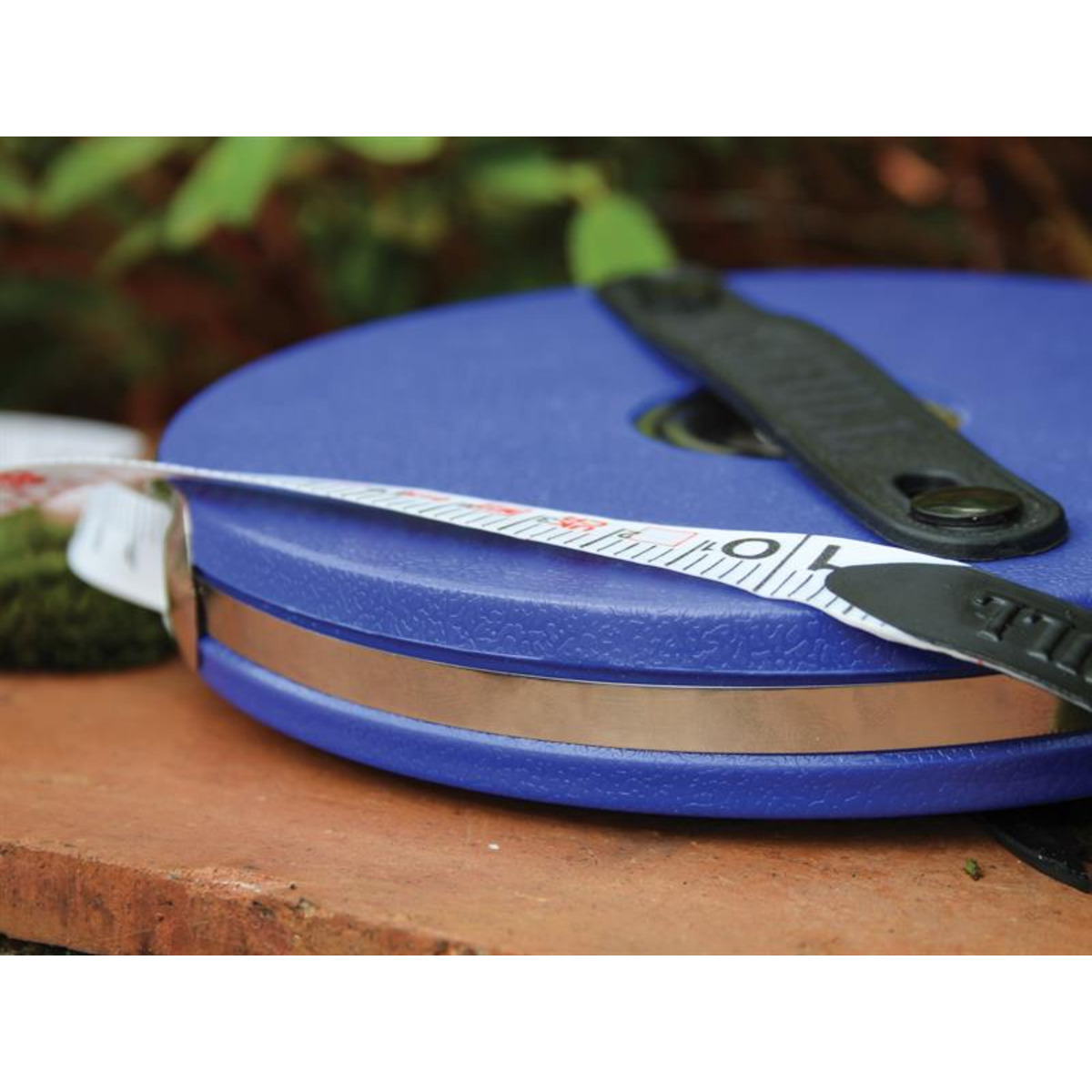 The tape has large and clear measurement increments which are easy to read in almost all-weather conditions, and the tape is easy to clean if it becomes dirty. Stored in a tough closed ABS case, which has a folding metal rewind handle that allows the tape to be quickly rewound after use.