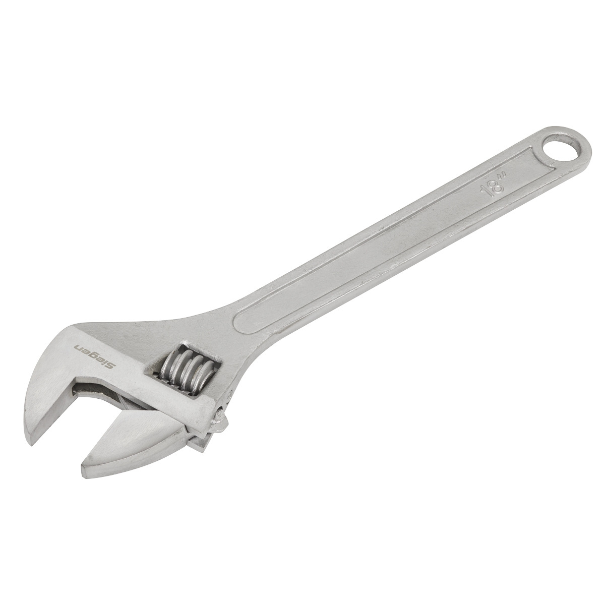 Part of the Siegen by Sealey range of quality tools at competitive prices. Hardened and heat treated steel with a chrome plated finish. Fully polished, offset jaws. Slim raised lip style handle with hanging hole. Capacity: 52mm. Lifetime guarantee*.