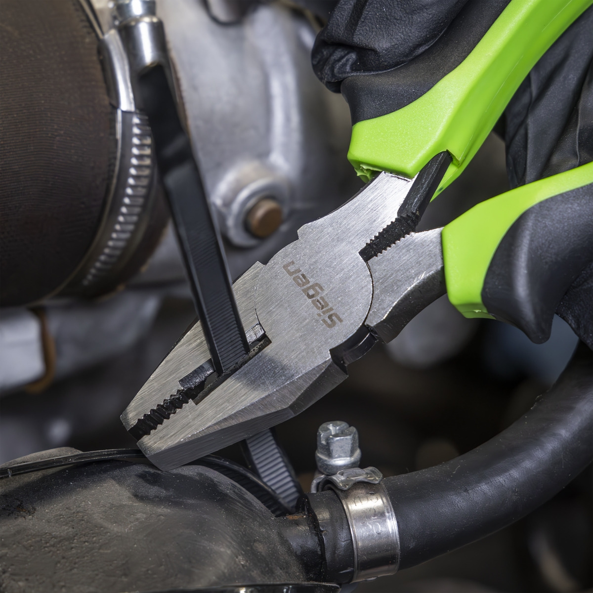 INDUCTION HEAT TREATED – Heat treated and hardened steel components for increased strength and resistance to wear. OVERSIZED GRIPS – For extra comfort and ease of use. 7PC SET - Contents: Side Cutters; 115mm, 195mm, Long Nose Pliers; 45° x 125mm, Straight x 205mm, 105mm End Cutters, 210mm Combination Pliers, 250mm Water Pump Pliers. COMPREHENSIVE RANGE OF PLIERS – Well suited for a range of applications. LIFETIME GUARANTEE*.