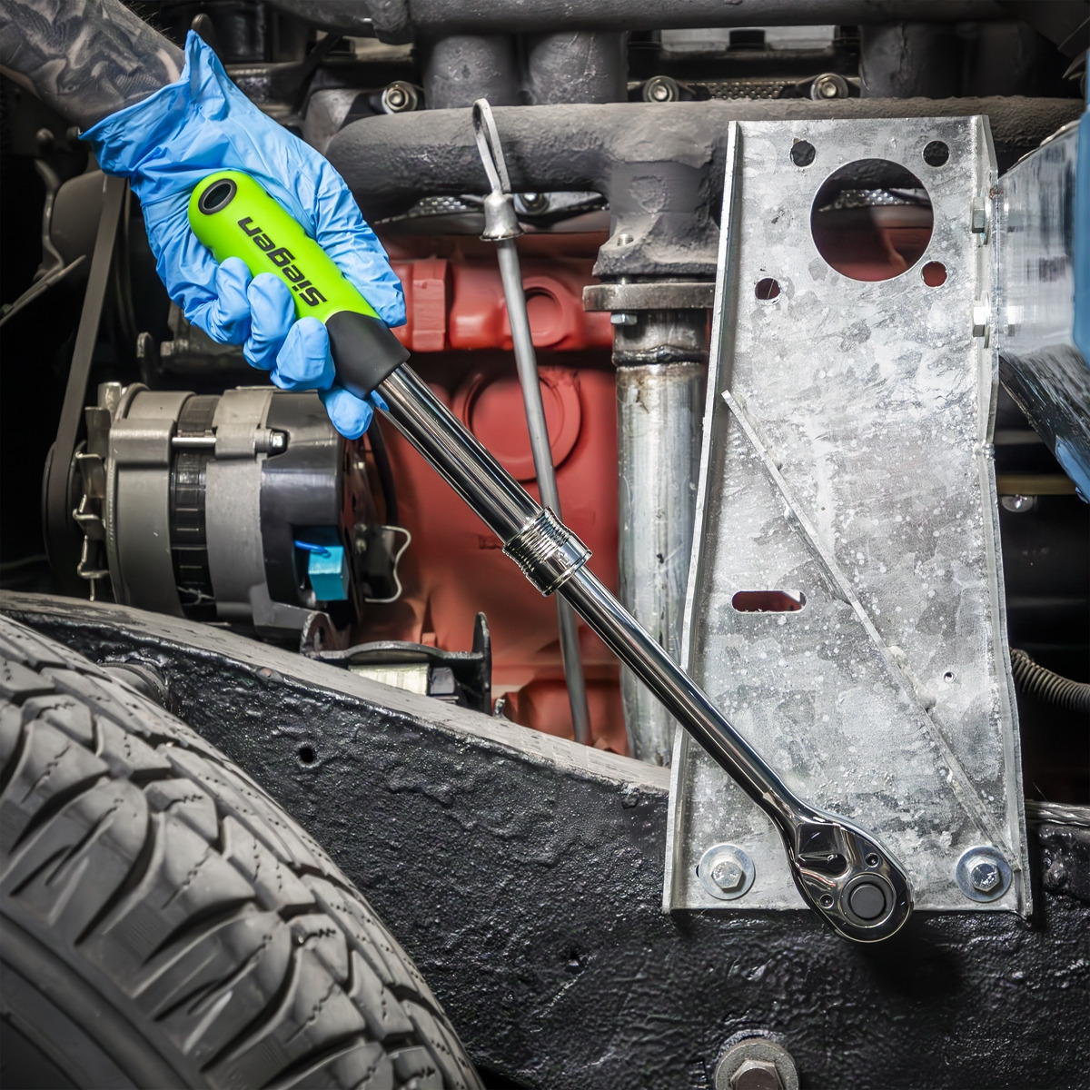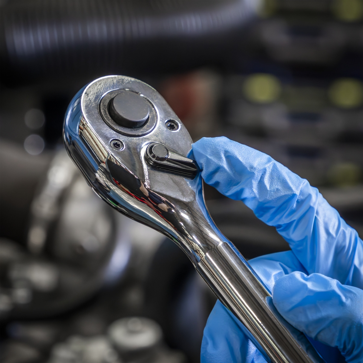 - 72-TOOTH EXTENDABLE RATCHET WRENCH – With flip reverse and push-button quick release.