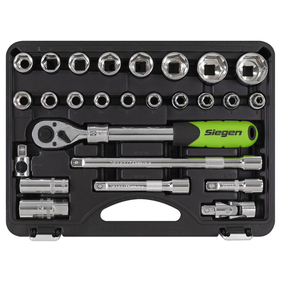 Sealey S01288 Siegen Extendable Ratchet Socket Set 1/2"Sq Drive 26pc