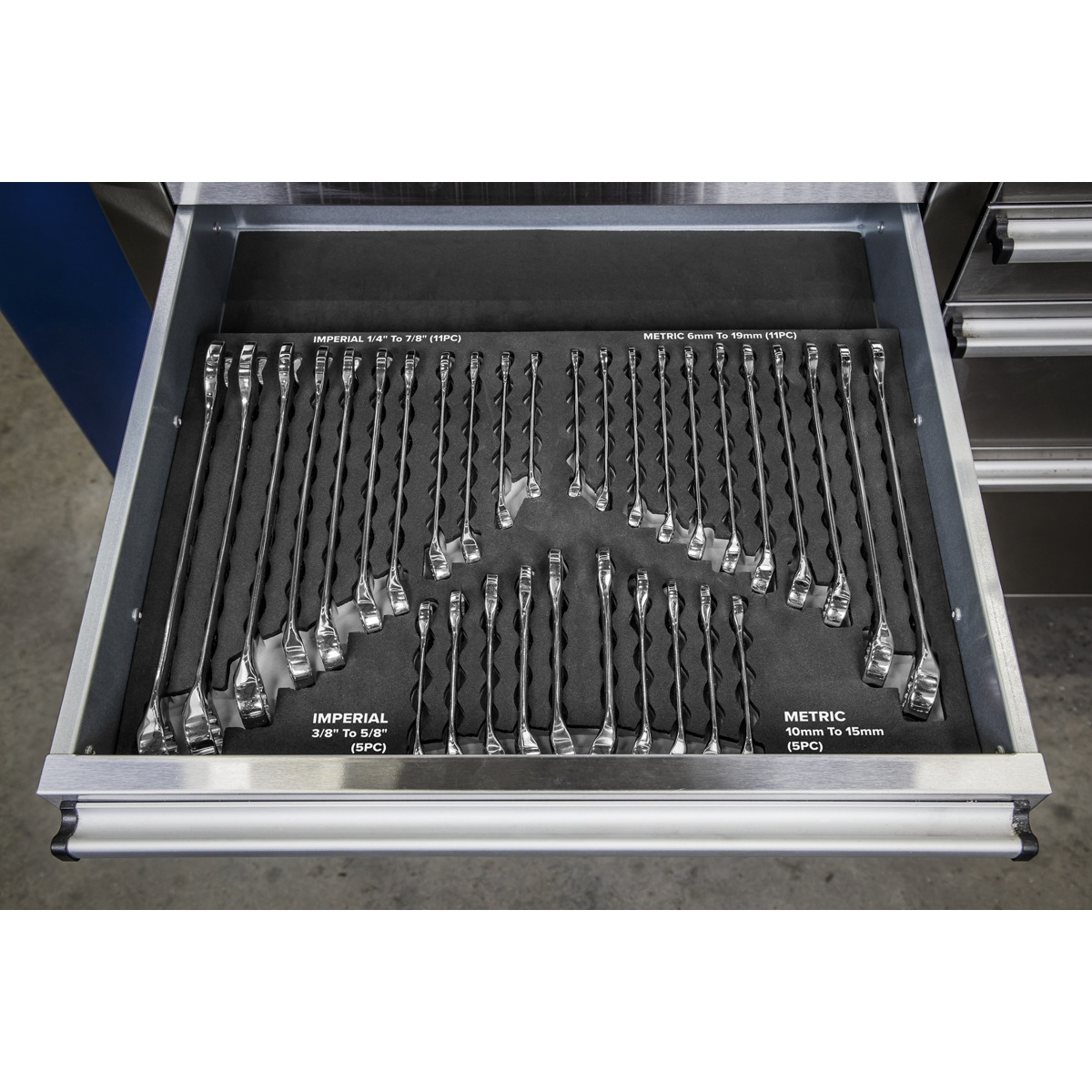 SIEGEN BY SEALEY – Part of the Sealey range of quality tools at competitive prices. 12-POINT WALLDRIVE® - Allows up to 30% more torque without damaging DROP FORGED CHROME VANADIUM STEEL – Hardened and tempered, with nickel chrome plating for corrosion resistance. 32PC SET WITH METRIC AND IMPERIAL SIZES - Metric Sizes Combination Spanners: 6, 7, 8, 9, 10, 11, 12, 13, 14, 17, 19mm; Stubby Spanner Sizes: 10, 11, 12, 13, 15mm. AF Sizes Combination Spanners: 1/4", 5/16", 3/8", 7/16", 1/2", 9/16", 5/8", 11/16", 3/4", 13/16", 7/8"; Stubby Spanner Sizes: 3/8", 7/16", 1/2", 9/16", 5/8". SUPPLIED IN EVA STORAGE TRAY – For easy storage solutions. Tray Size (W x D x H): 384 x 289 x 25mm. LIFETIME GUARANTEE*.