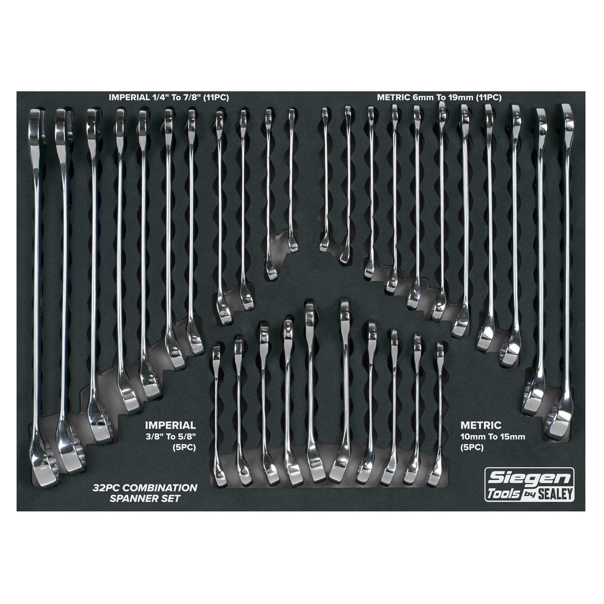 Sealey S01239 Siegen Metric/Imperial Combination Spanner Set 32pc