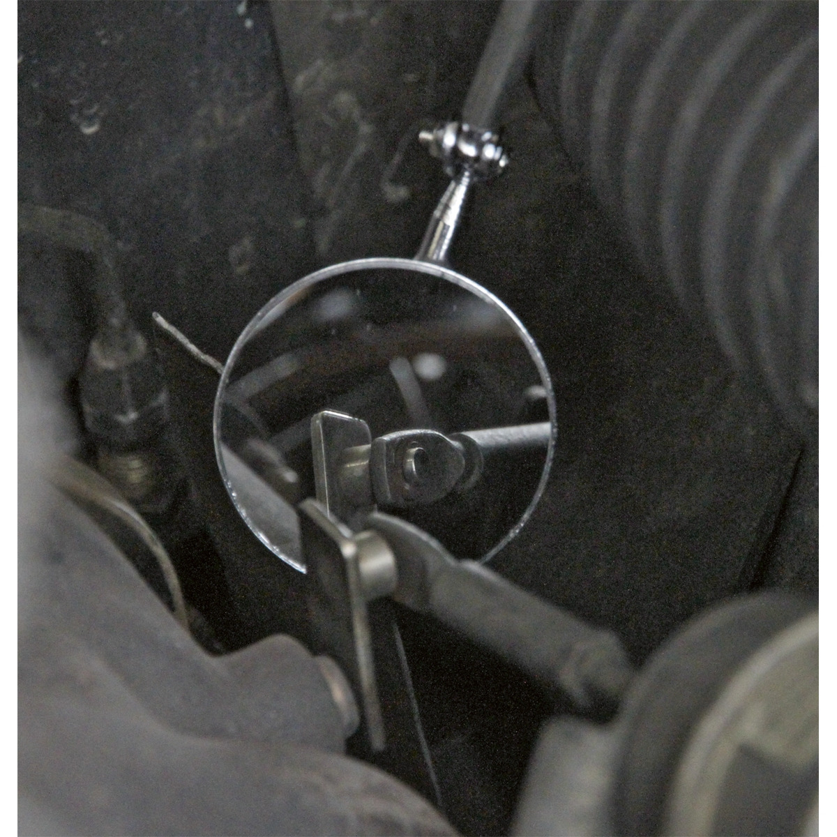 - 5-Section stainless steel Ø50mm inspection mirror mounted on twin ball joints.