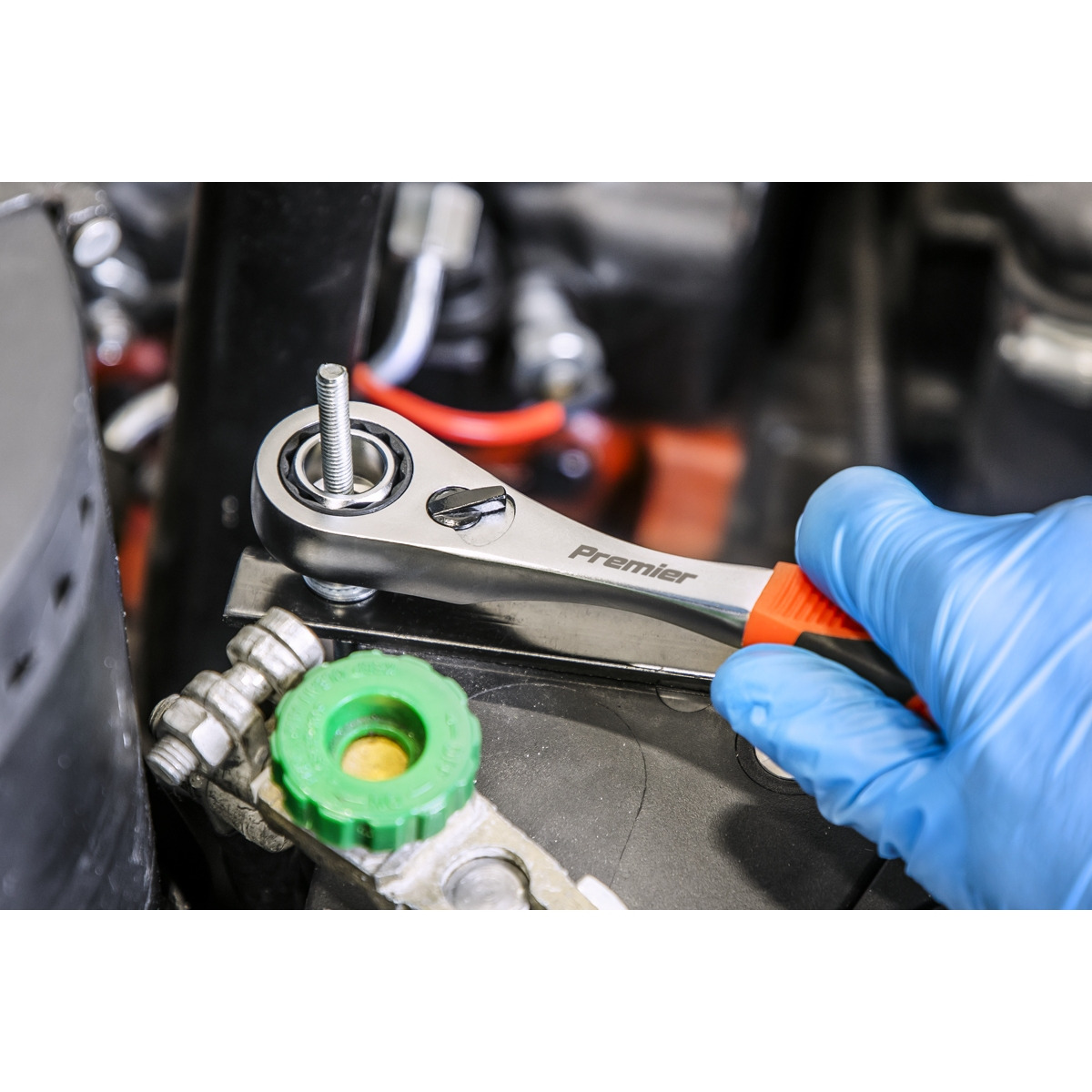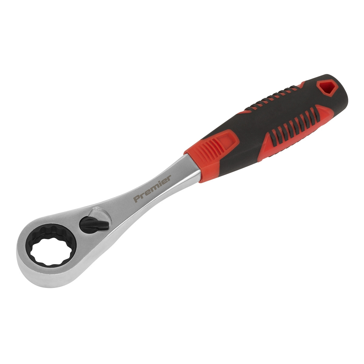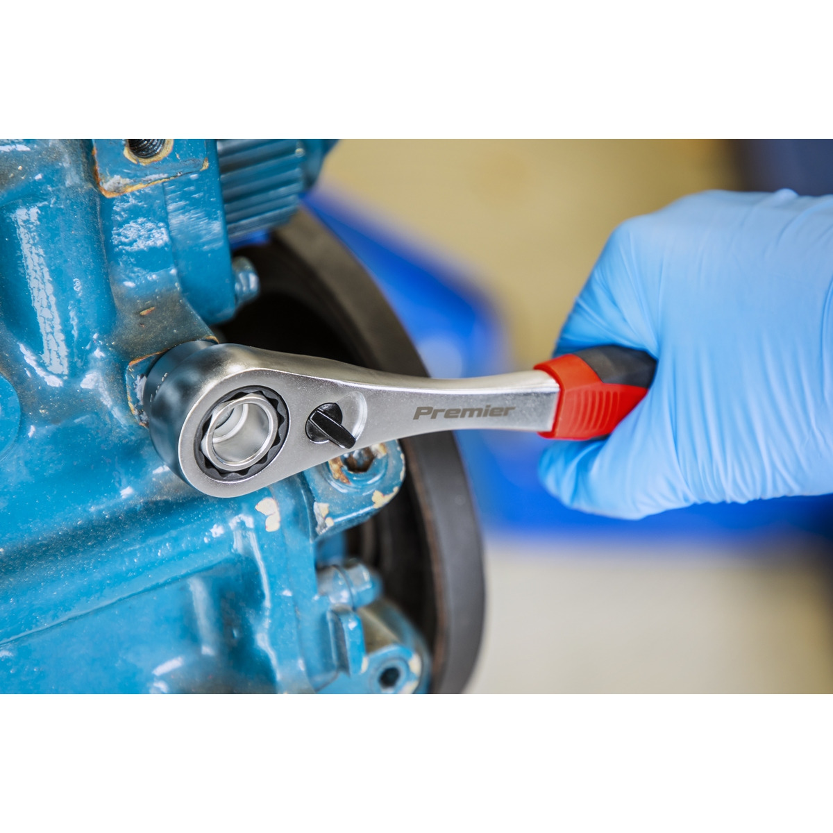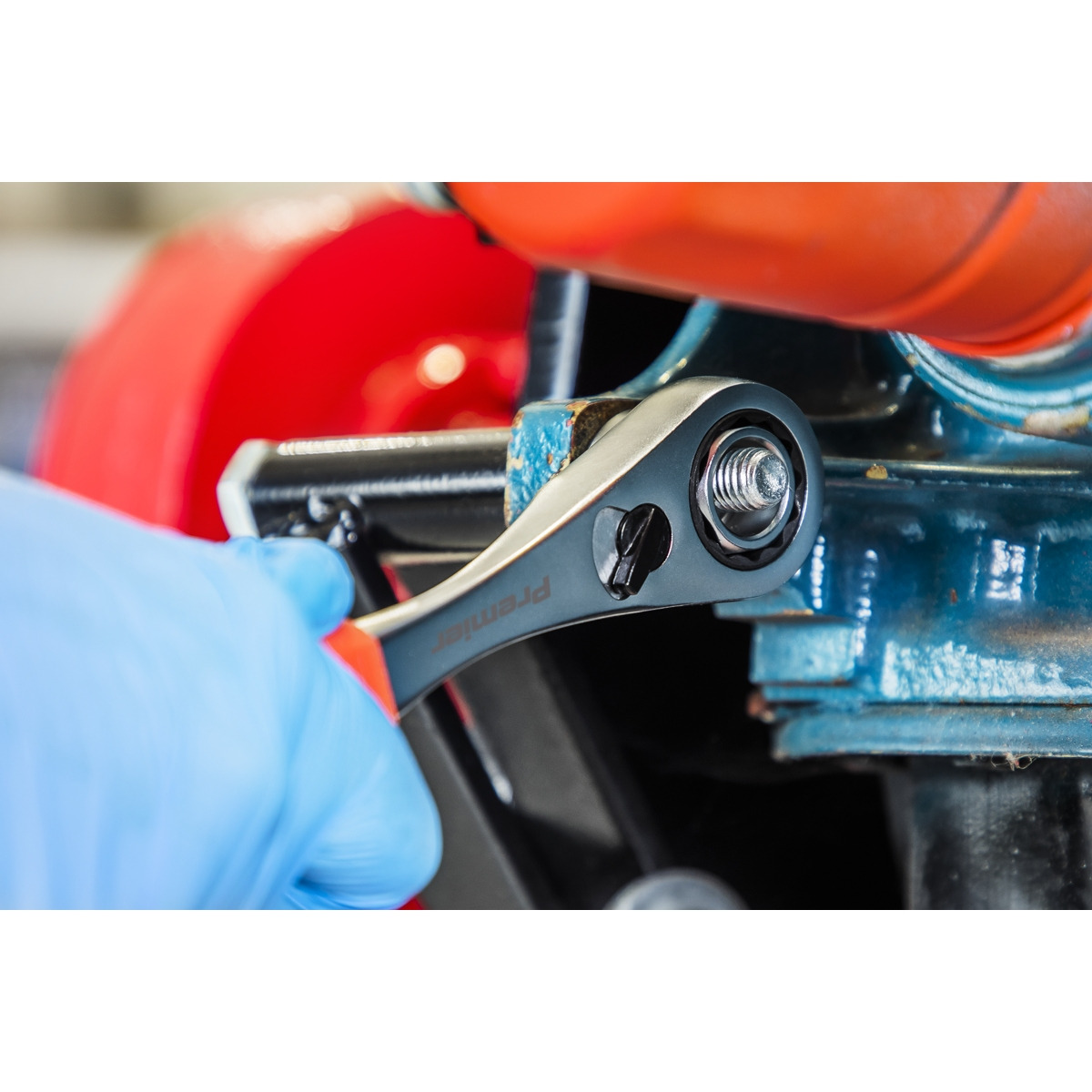 - 72-TOOTH RATCHET – 19mm flip reverse ratchet wrench with push-through socket release.