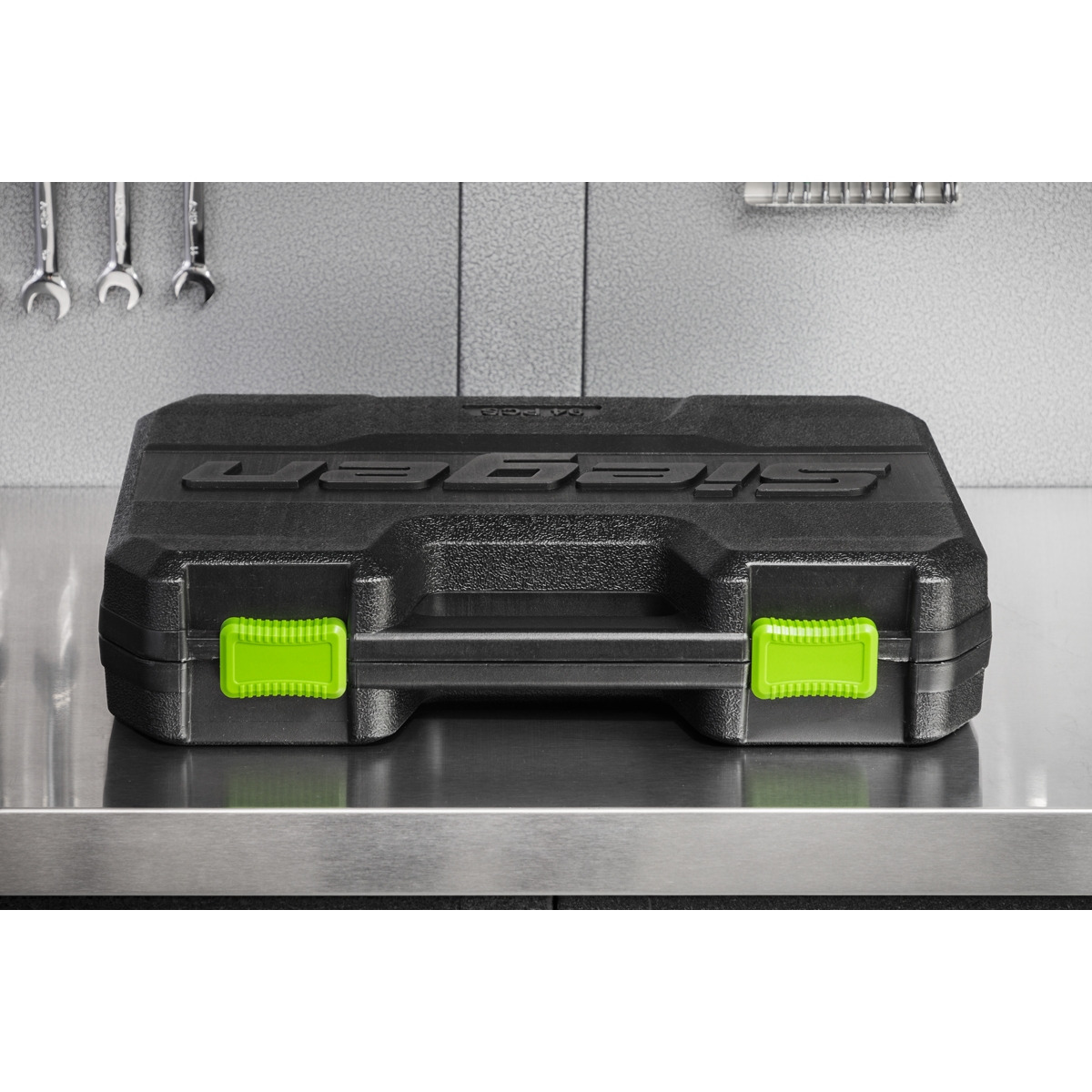 Part of the Siegen by Sealey range of quality tools at competitive prices. Professional socket set manufactured from hardened and heat treated Chrome Vanadium steel. Fully polished with a mirror finish. Covers sizes from 4 to 32mm. Includes 72-tooth comfort grip ratchet wrenches, spark plug sockets, extension bars, socket bits, bits, spinner handle and accessories. Supplied in storage case. Lifetime guarantee*.