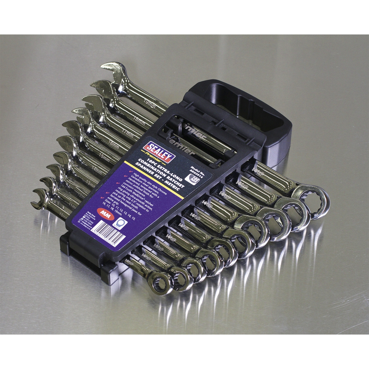 Sealey AK63914 Premier Extra-Long Combination Ratchet Spanner Set 10pc