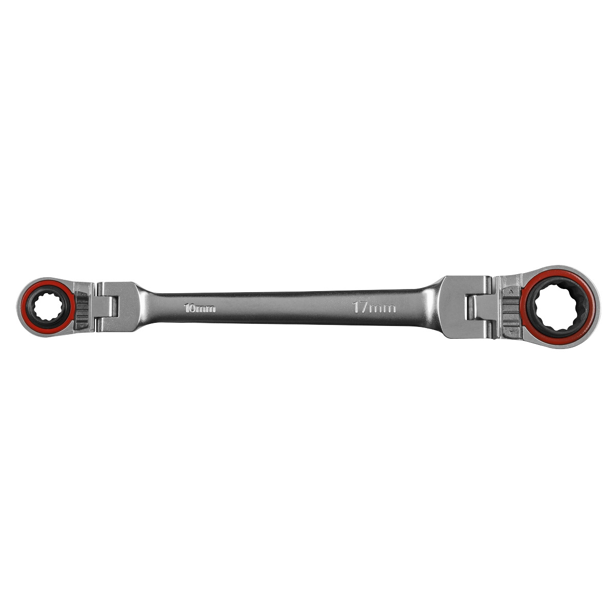 One of a comprehensive range of Premier Hand Tools, suitable for daily professional use. Manufactured from Chrome Vanadium steel, hardened and tempered with a fully polished micro satin finish. Innovative ring design allows four different sizes on one spanner. 100-Tooth ratchet rings require only 3.6º rotation to pick up the next tooth, ideal for applications where space is limited. Size Coverage: 10 x 13, 17 x 19mm. Lifetime guarantee*.