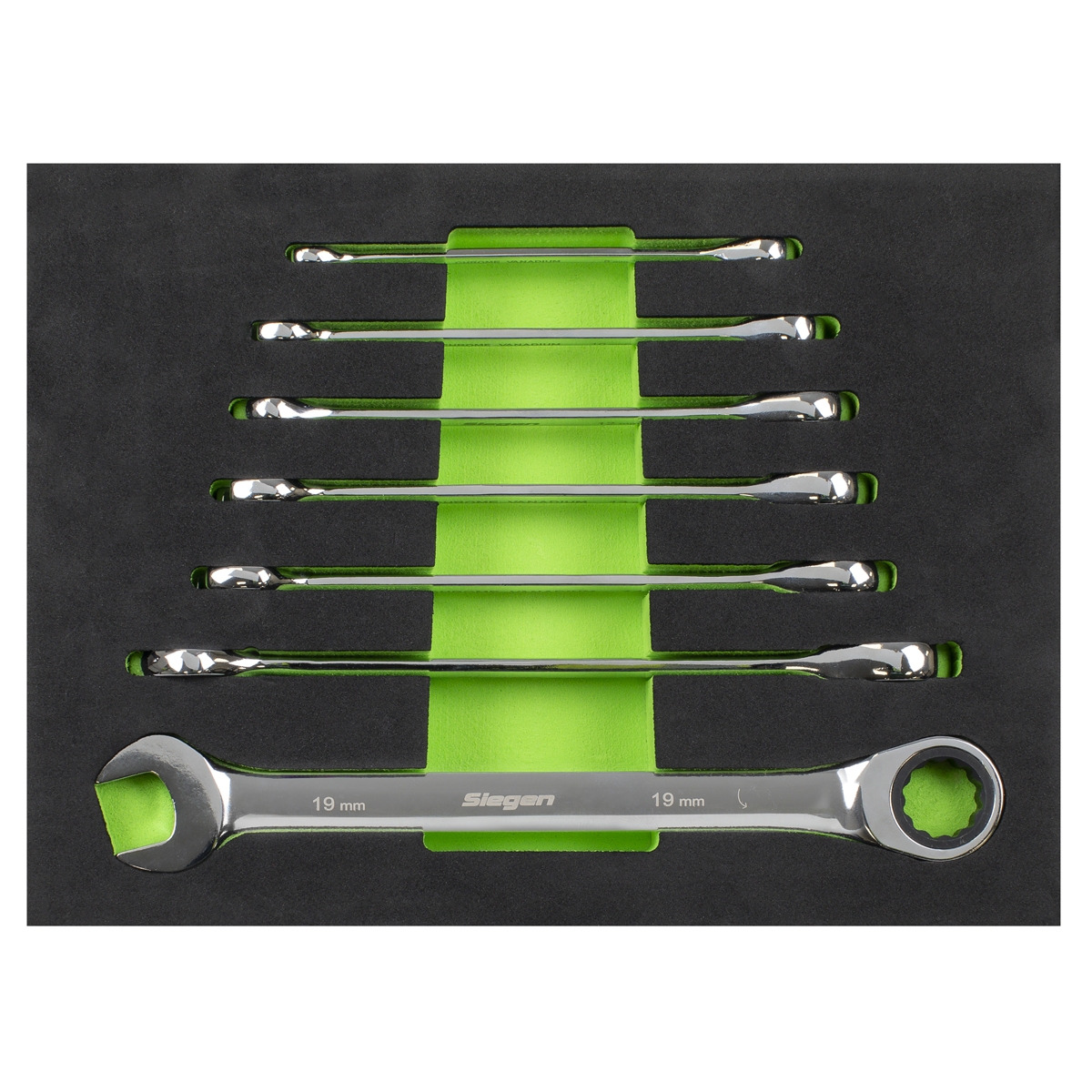 Sealey S01142 Siegen Combination Ratchet Spanner Set with Tool Tray 7pc