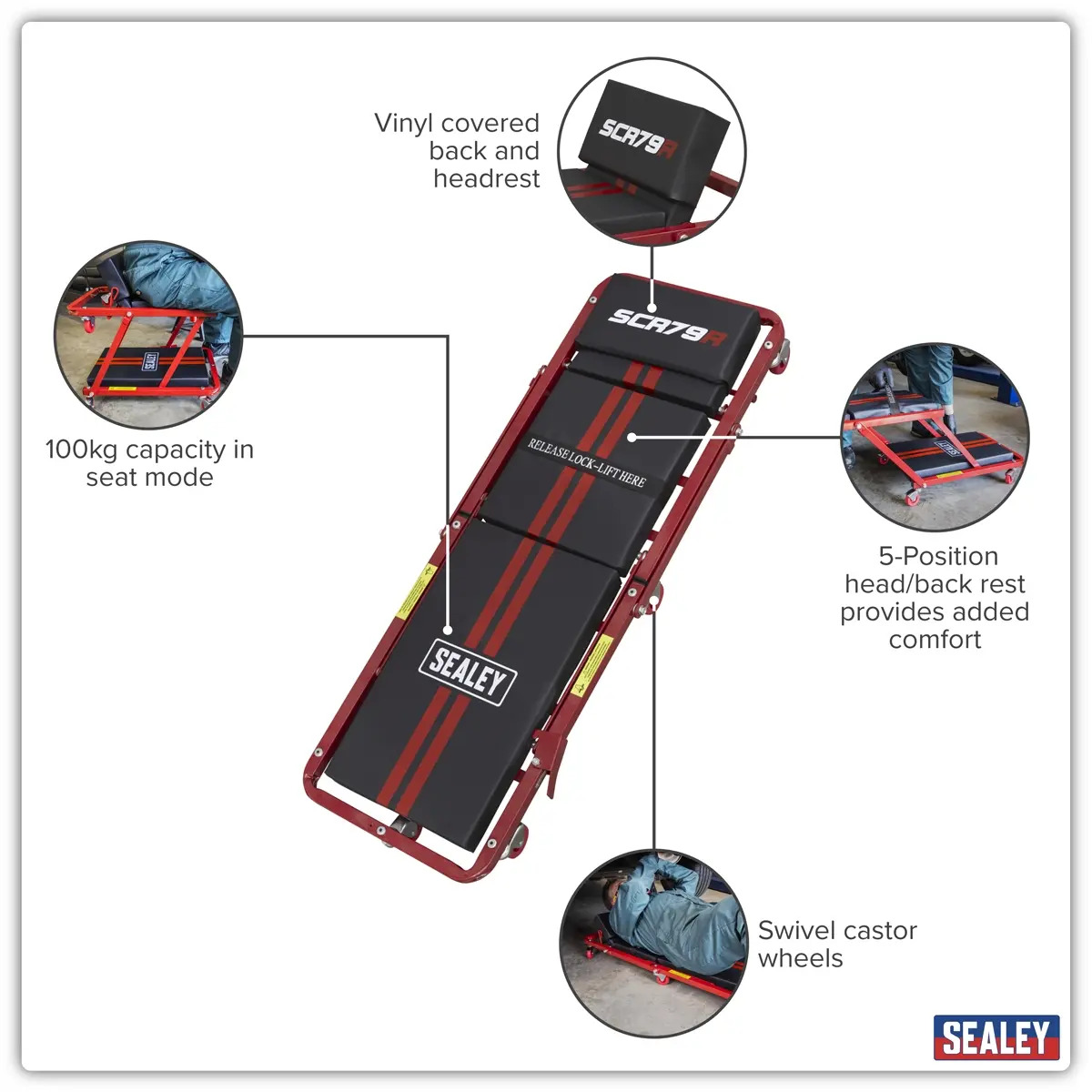 Sealey SCR79 Steel Creeper/Seat with 7 Wheels & Adjustable Head Rest