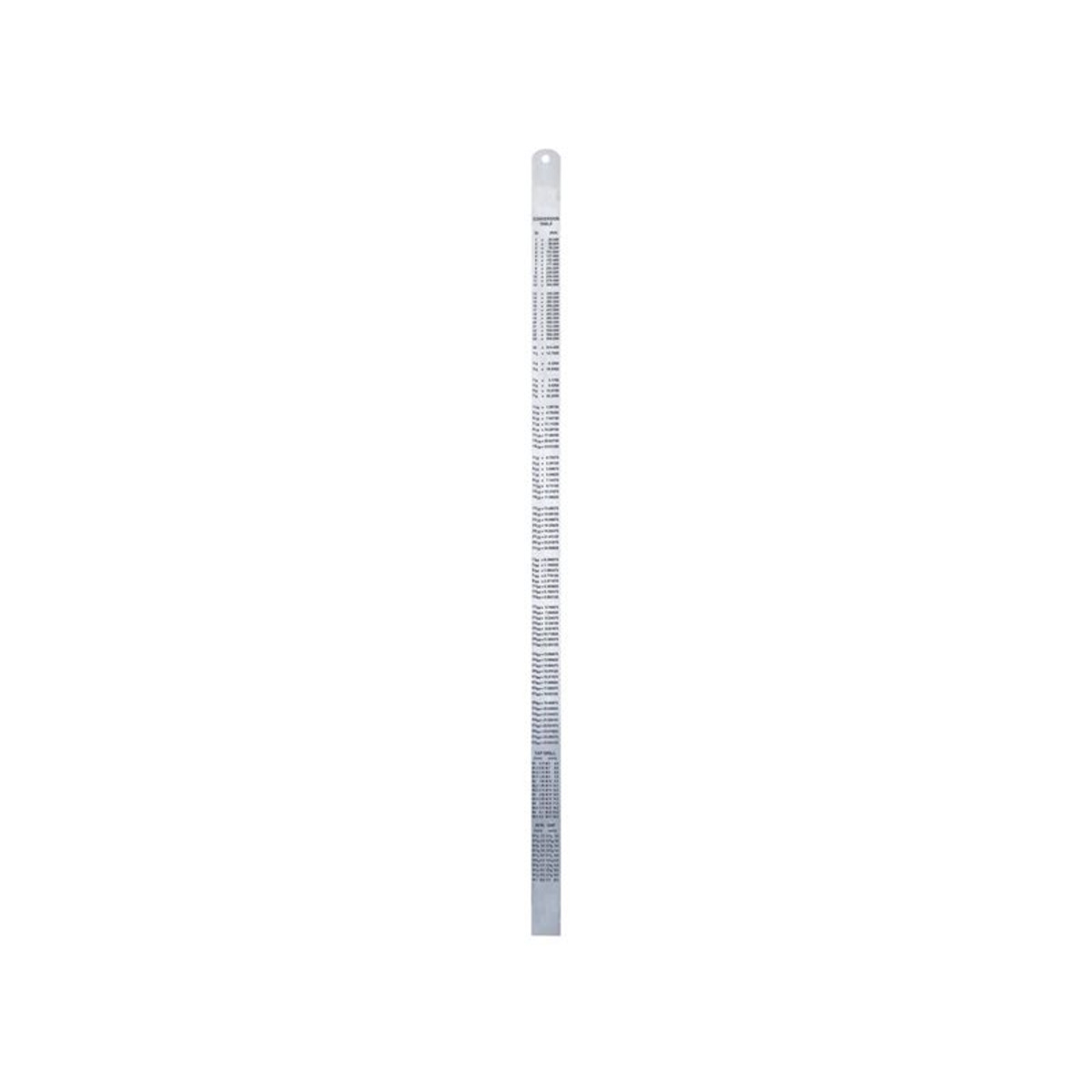 These Faithfull flexible stainless steel rule with permanently etched metric and inch readings. The rule is graduated in 16ths, 32nds and 64ths of an inch on one side and 0.5 and 1mm on the other. With handy conversion tables etched on the reverse and hanging holes for easy storage.