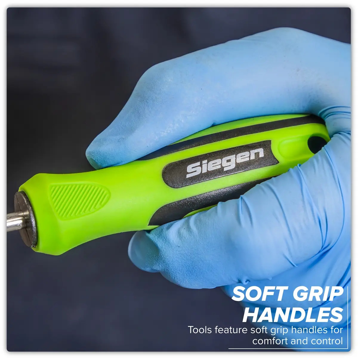 - SOFT GRIP HANDLES - Tools feature soft grip handles for comfort and control.