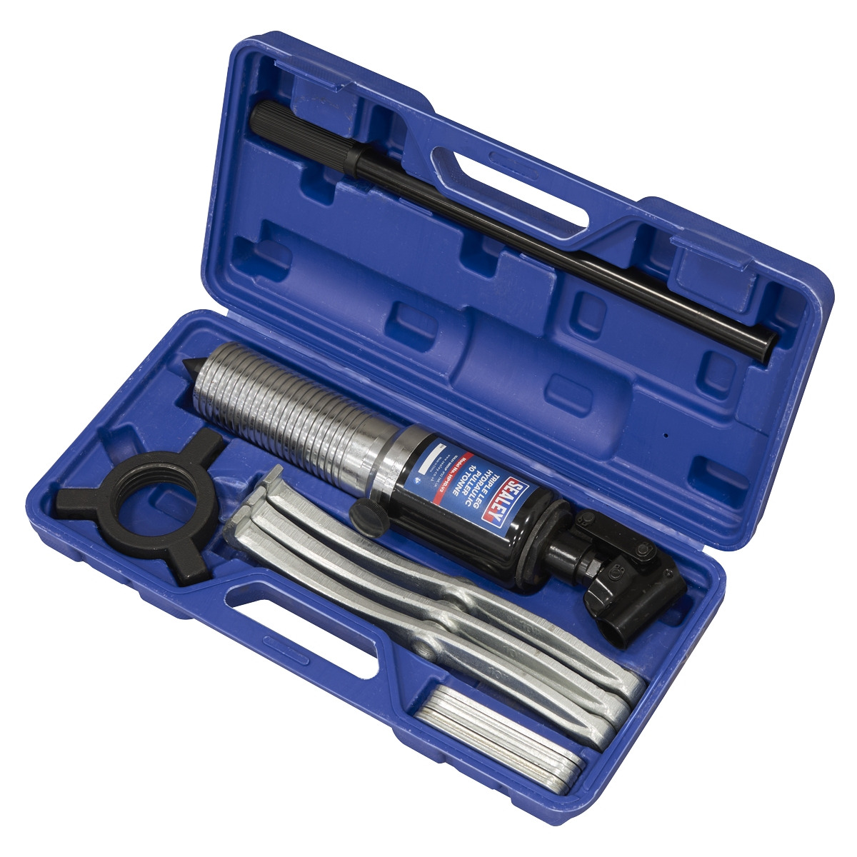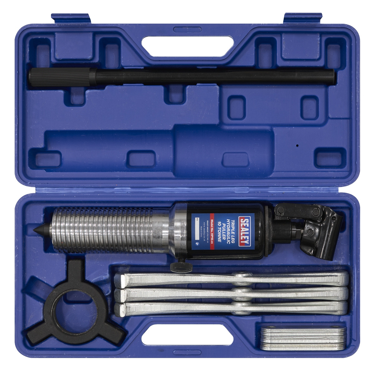 HEAVY-DUTY - Withstands up to 10 tonnes for heavy applications. 2-POSITION LEGS - Supplied with three 2-position puller legs. WIDE USE OF APPLICATIONS - Suitable for pulling hubs, flanges and bearings. SUPPLIED IN STORAGE CASE - For easy storage solutions. 10 TONNE HYDRAULIC RAM - Contents: 310mm Leg (x3), Triple Head, 10 Tonne Ram and Handle, 115mm Leg Connector (x6), Nut and Bolt (x6)