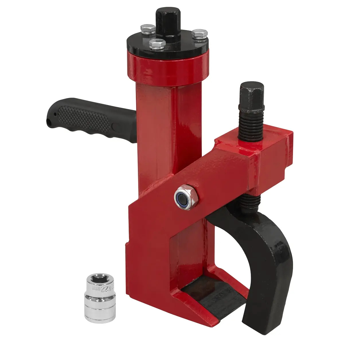 Manual bead breaker, especially suitable for motorcycle tyres. Lever action with parallel linkage keeps head at the optimum angle for breaking the bead.