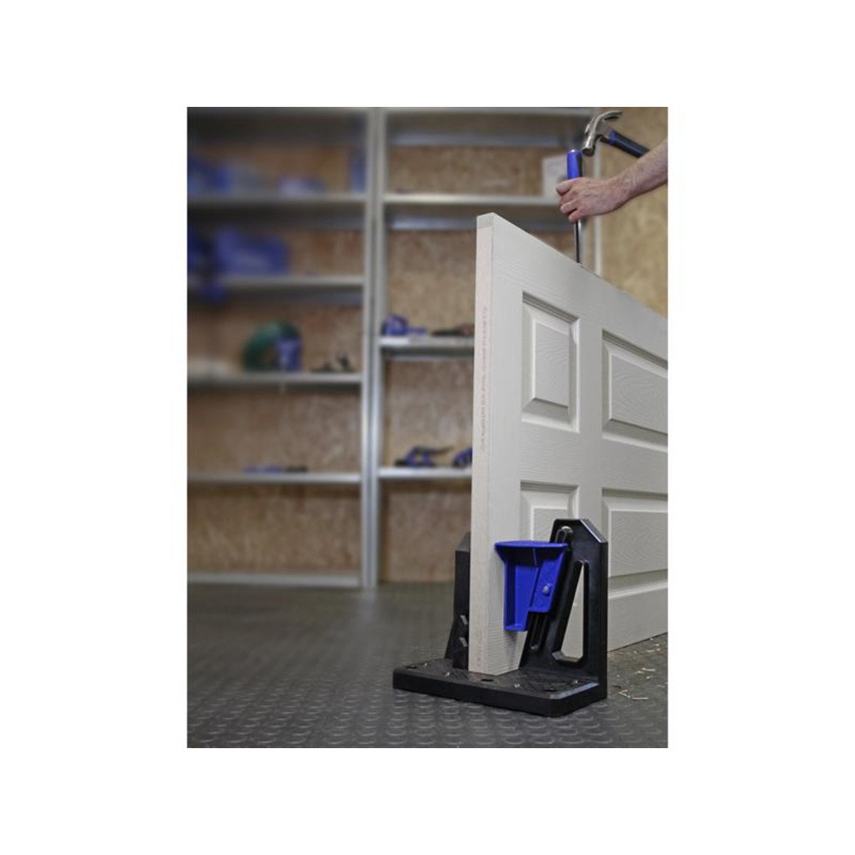 Its strong grip will hold materials up to a width of 55mm (2 ¼in) making it ideal for working on FD30 and FD60 fire doors. Simply push the grip out of its holder, and securely lock onto the side of the object. This can be done with a hand, or foot, depending on the application it is used for.