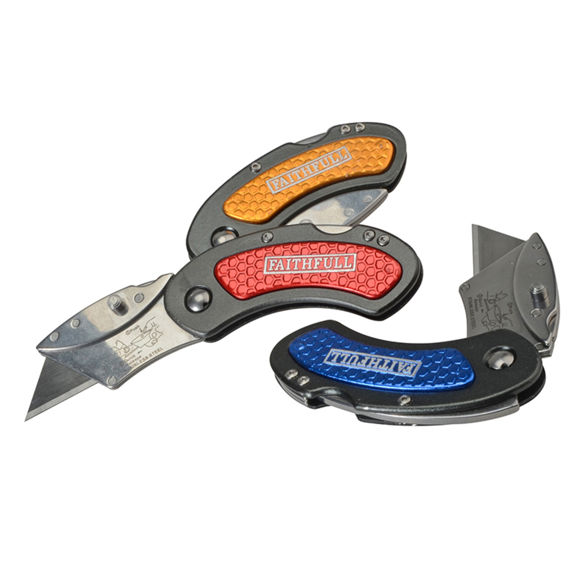The Faithfull Utility Folding Knife is a compact sized folding pocket knife and a blade locking system with quick blade change.