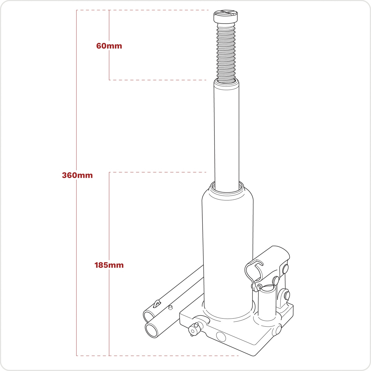 Fitted with overload valve. Base and reservoir machine welded for increased strength and eliminates leakage. Supplied with 2-piece handle. 3 Year guarantee*.