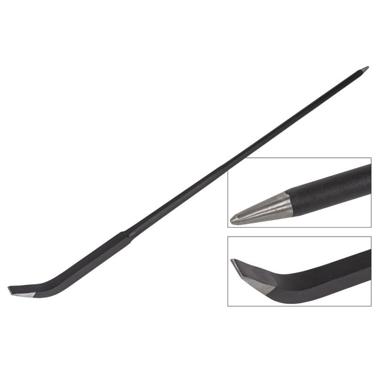 This Roughneck Warehouse Bar has an L-end for heavy-duty loading and lifting and pointed tip for breaking stone and concrete. With a drop-forged steel construction that has specific heat-treated working areas, and a black finish with polished tips.