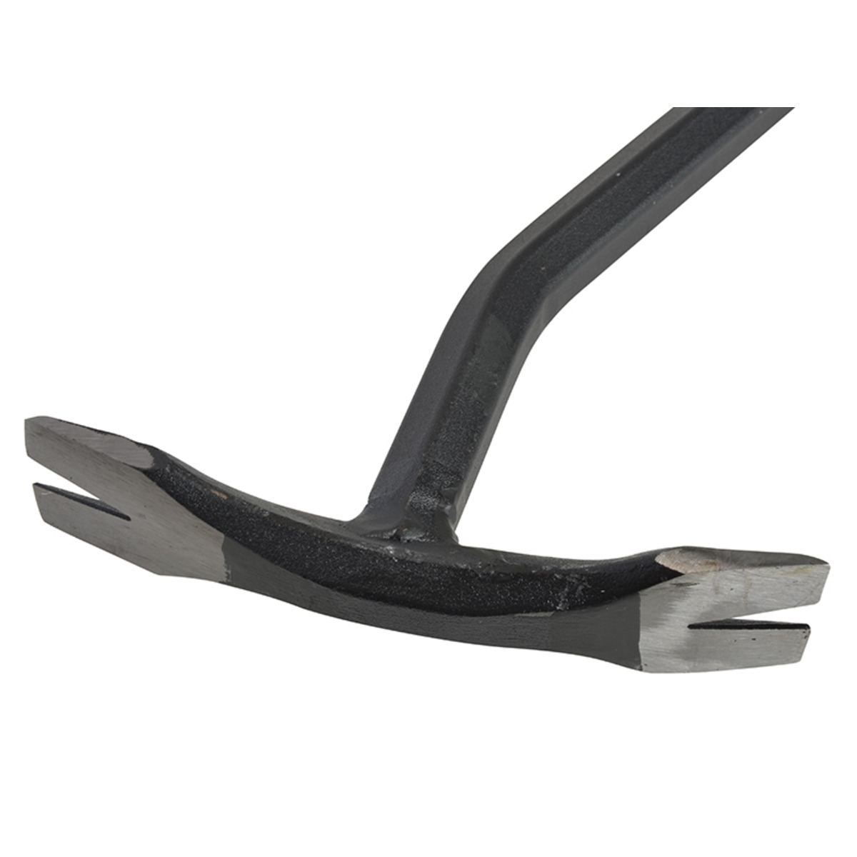 A T-Type wrecking bar with wider, low profile claw surface for better control, making it easier to fit under the workpiece. It also has a double claw for added versatility, and a wider chisel blade. Made from drop-forged hardened and tempered steel, and has a polished tip. It has a hexagonal shank and welded head.