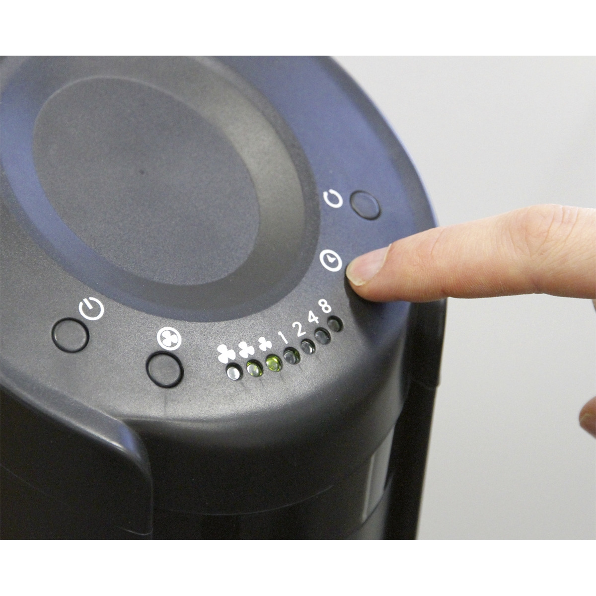 - Remote control operation with 3-speeds and an 8 hour timer.