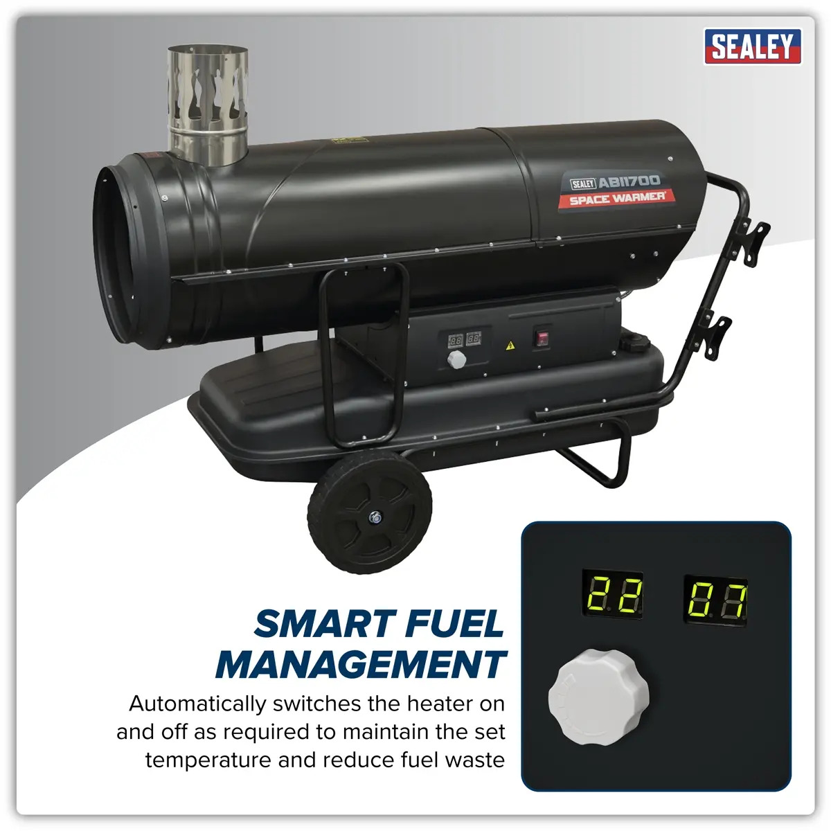 Sealey ABI1700 Space Warmer® Indirect Kerosene/Diesel Heater with Wheels 170,000Btu/hr