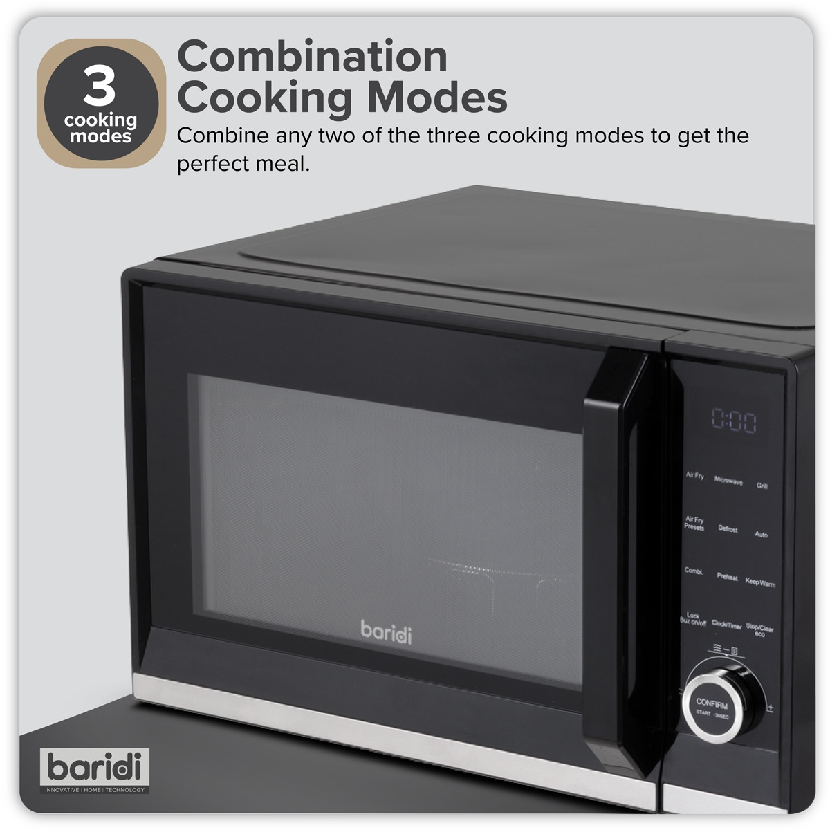 - VERSATILE - Features 7-in-1 functionality with ai r fry, microwave, grill, combi, defrost, pre-heat and keep warm settings.