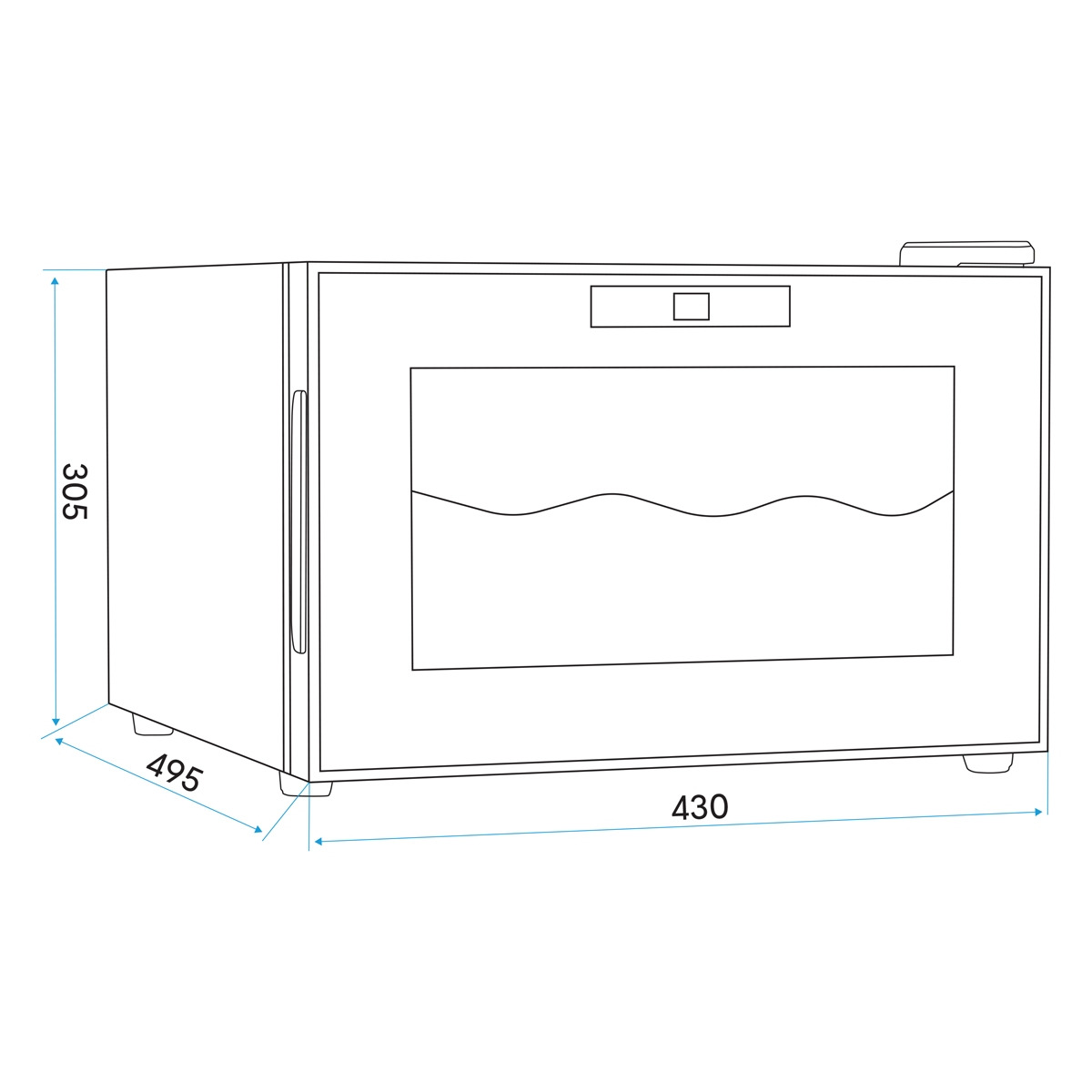 TEMPERATURE RANGE - The thermoelectric wine cooler offers a temperature range of 5 - 18°C (41-64°F). LARGE STORAGE CAPACITY - Despite its small footprint, this wine cooler maximizes storage capacity, allowing you to comfortably store and display up to eight bottles of your favourite wines without taking up excessive space in your kitchen or living area. THERMOELECTRIC COOLING - The advanced thermoelectric cooling system ensures silent and vibration-free operation, preserving the delicate flavours and aromas of your wines. DIGITAL DISPLAY - The wine cooler features easy-to-use digital controls and a clear LED display, enabling you to effortlessly set and monitor the desired temperature. STYLISH DESIGN - With its sleek and modern design, this wine cooler adds a touch of sophistication to any space. The tempered glass door not only enhances its visual appeal but also protects your wines from harmful UV rays.