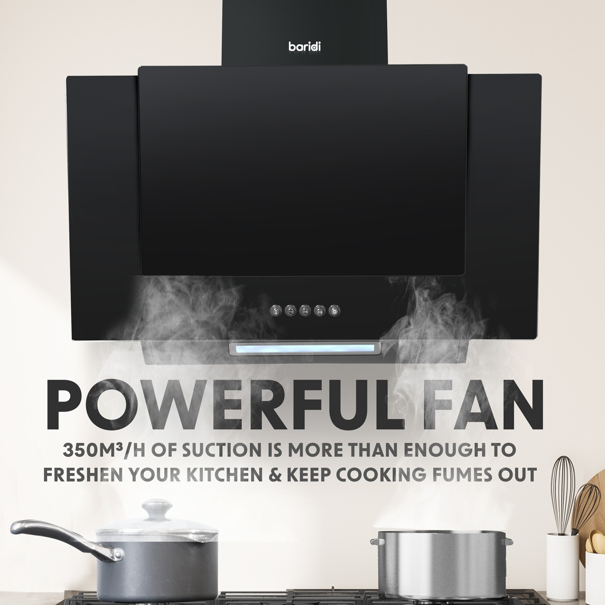 - POWERFUL FAN - 65W of power with 350m³/hr of suction is more than enough to freshen your kitchen and keep cooking fumes out of the rest of your house. With three fan speeds you're in full control.