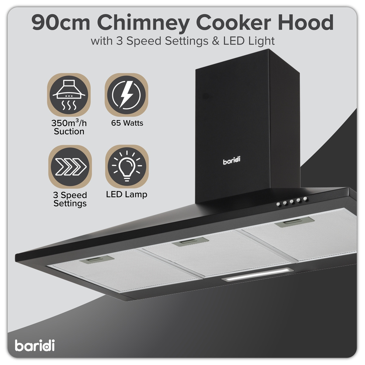 - STANDARD SIZE - 90cm Chimney style cooker hood covers the majority of cookers and hobs.