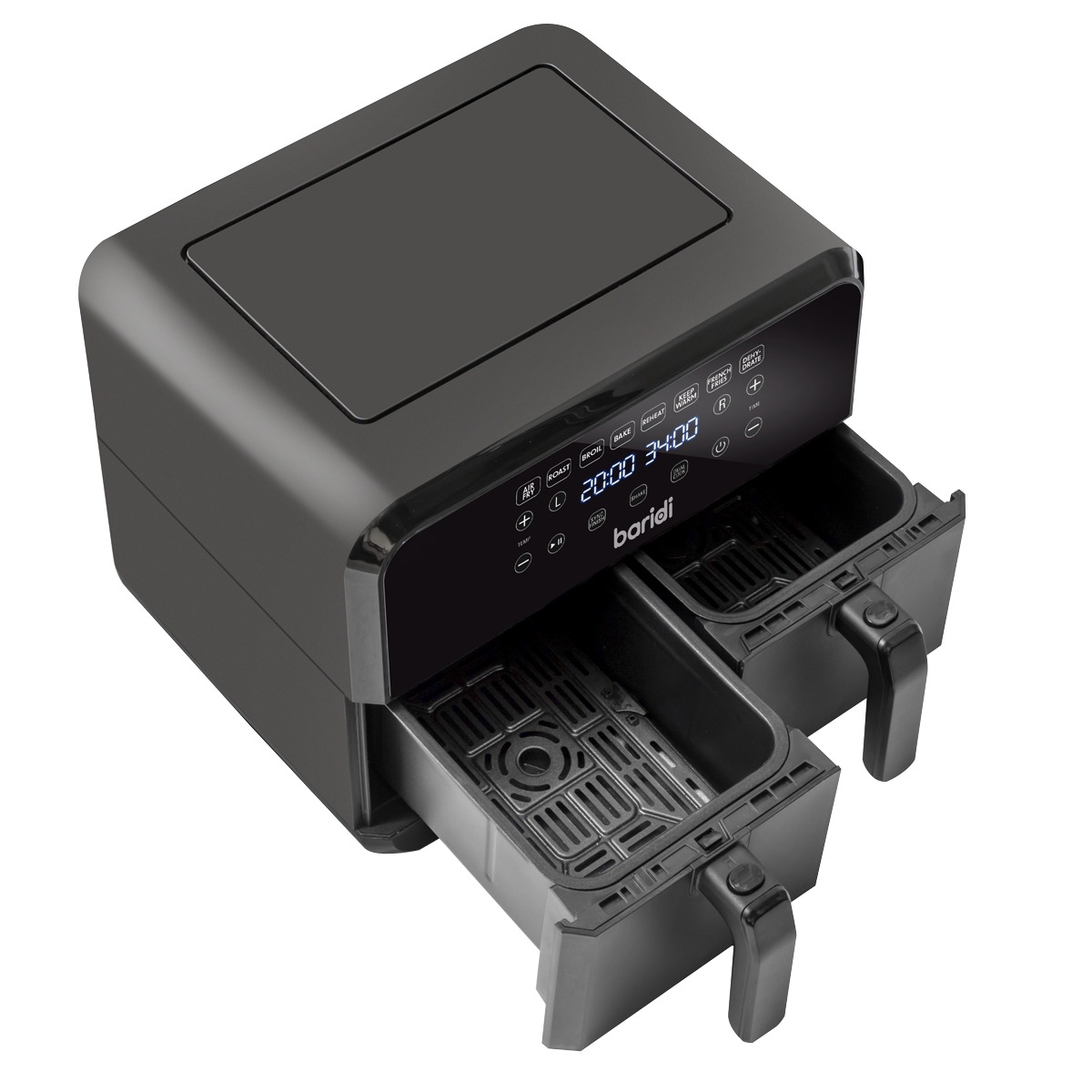 - NO MORE BACK-TO-BACK COOKING – Dual basket function allows you to cook different foods on different cooking programmes, so each part of your meal is ready simultaneously.