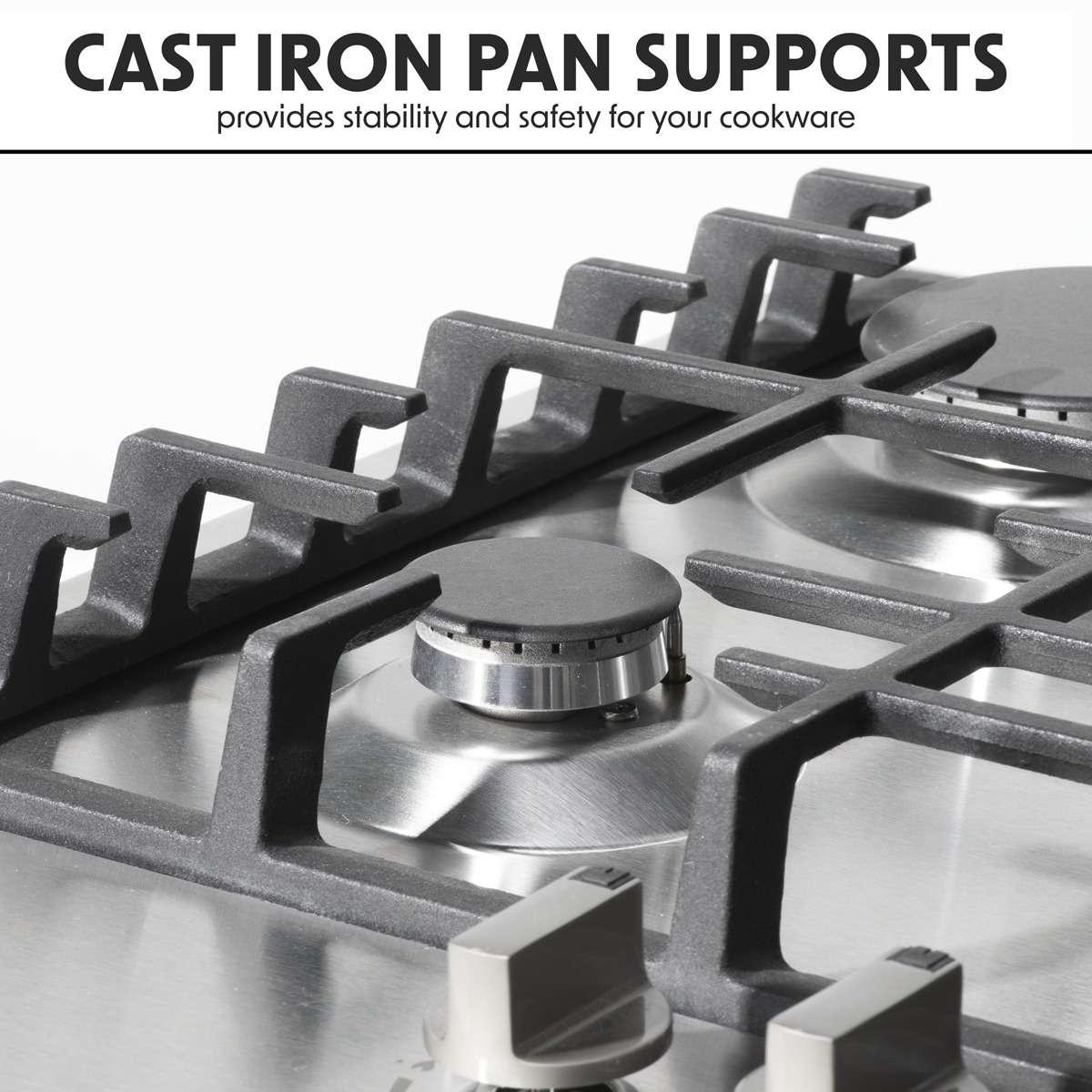 - CAST IRON PAN SUPPORTS - The robust cast iron pan supports not only provide stability and safety for your cookware.