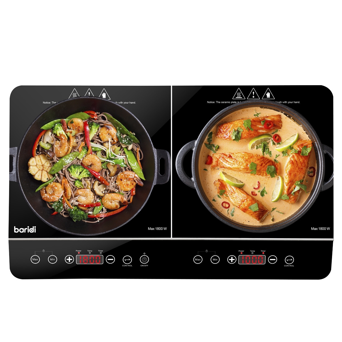 - TIMER FUNCTION - This Baridi dual-zone induction hob also features a digital timer which runs for up to 3hrs, helping to keep your cooking stress free.