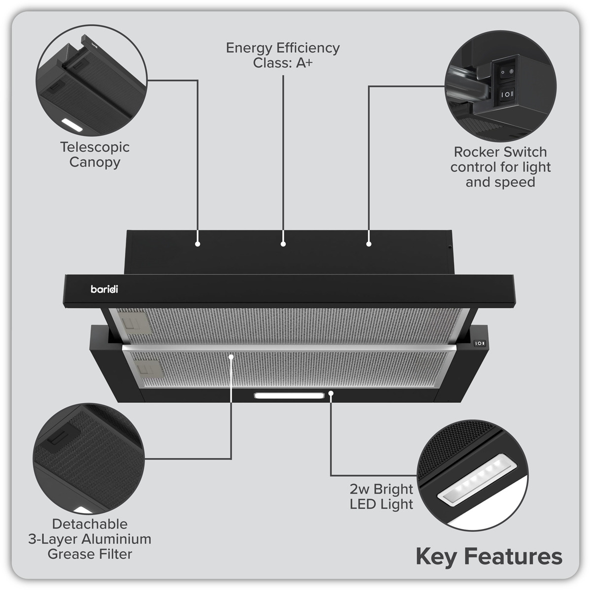 - STANDARD SIZE - 60cm Telescopic style cooker hood covers the majority of cookers and hobs.