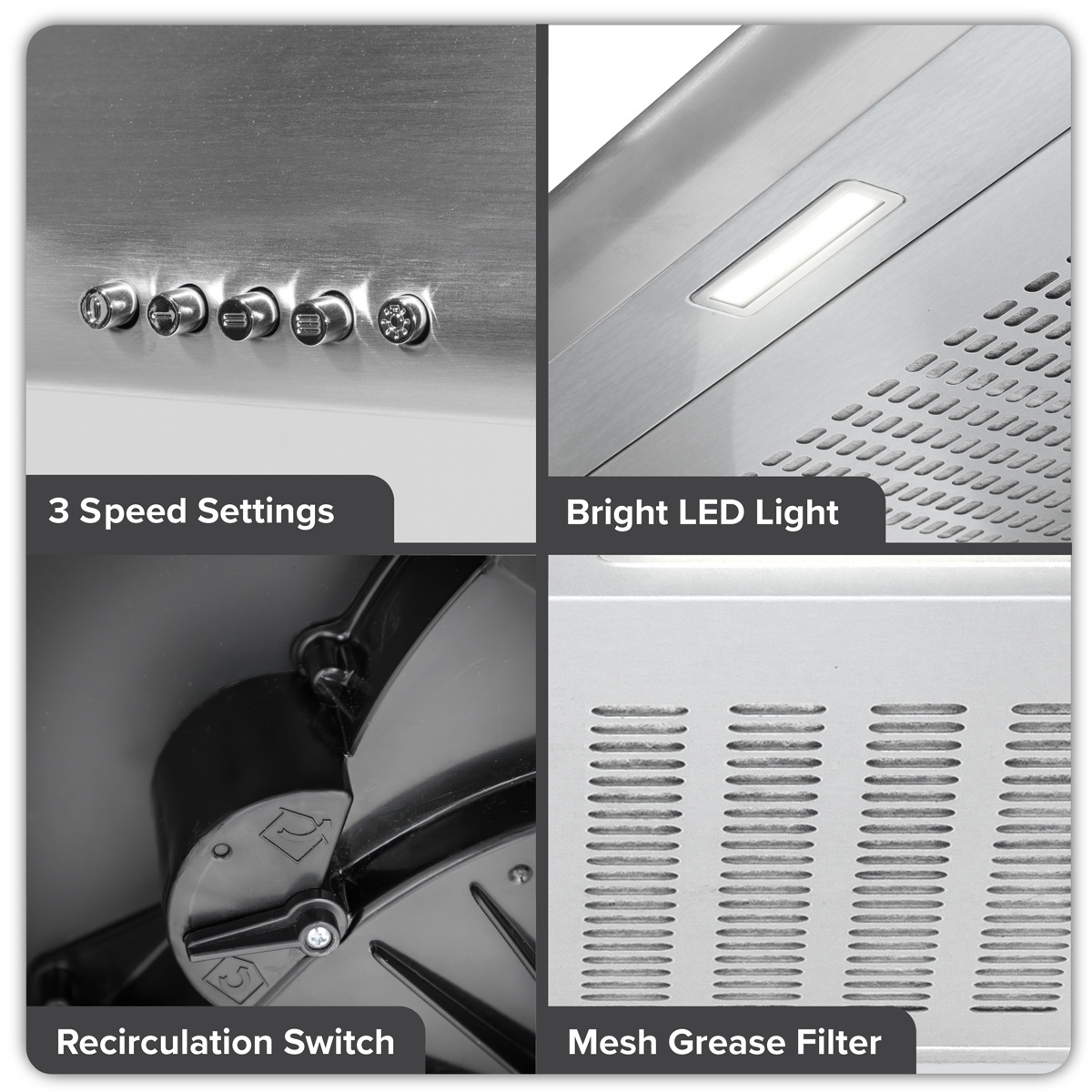 - STYLISH DESIGN - This elegant yet modern wall hood delights, effortlessly bringing style to any kitchen type.