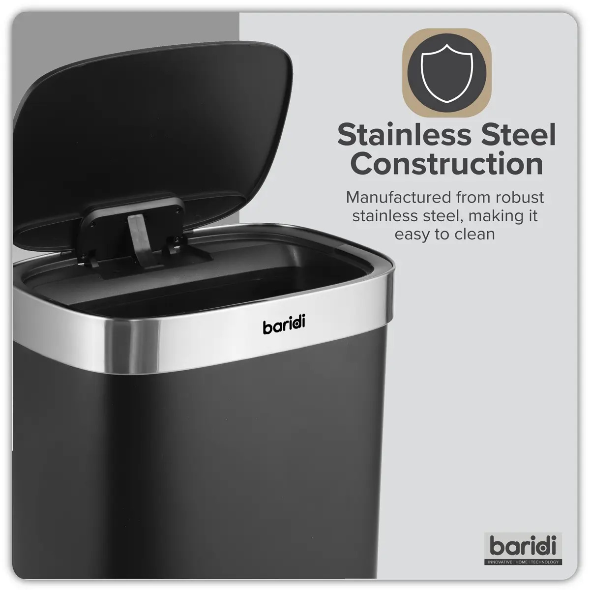 - TOUCH-FREE - Motion sensor opens the bin automatically for hygienic waste disposal.