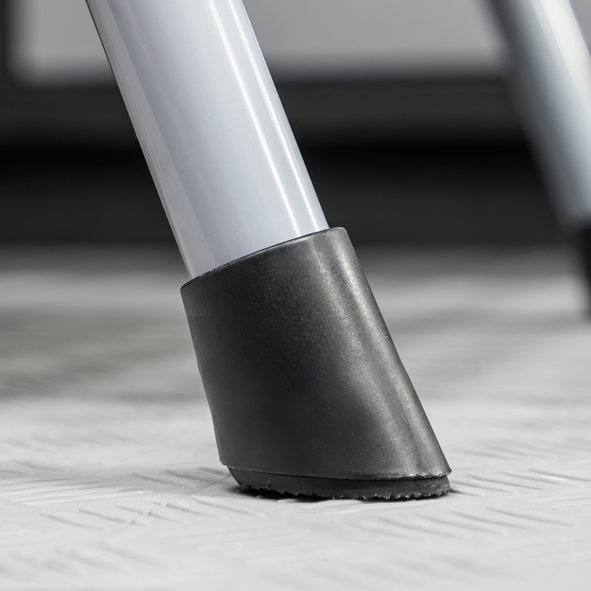 EN 14183 Tested steps with 150kg capacity. Tubular metal construction with composite feet for added stability. Features three large anti-slip treads. Foam-cushioned hand rail for added comfort. Also suitable as a stool. Top Step Height: 710mm. Folds flat for easy storage and transportation.