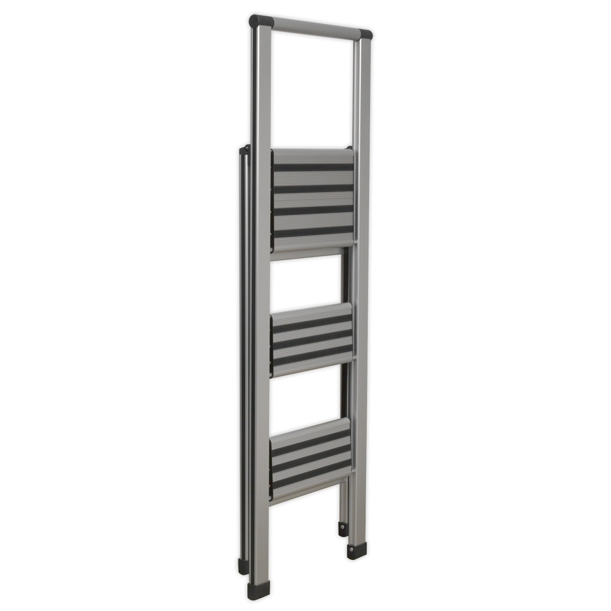 Sealey APSL3 Aluminium Professional Fold-Flat Step Ladder 3-Step 150kg Capacity - EN 14183