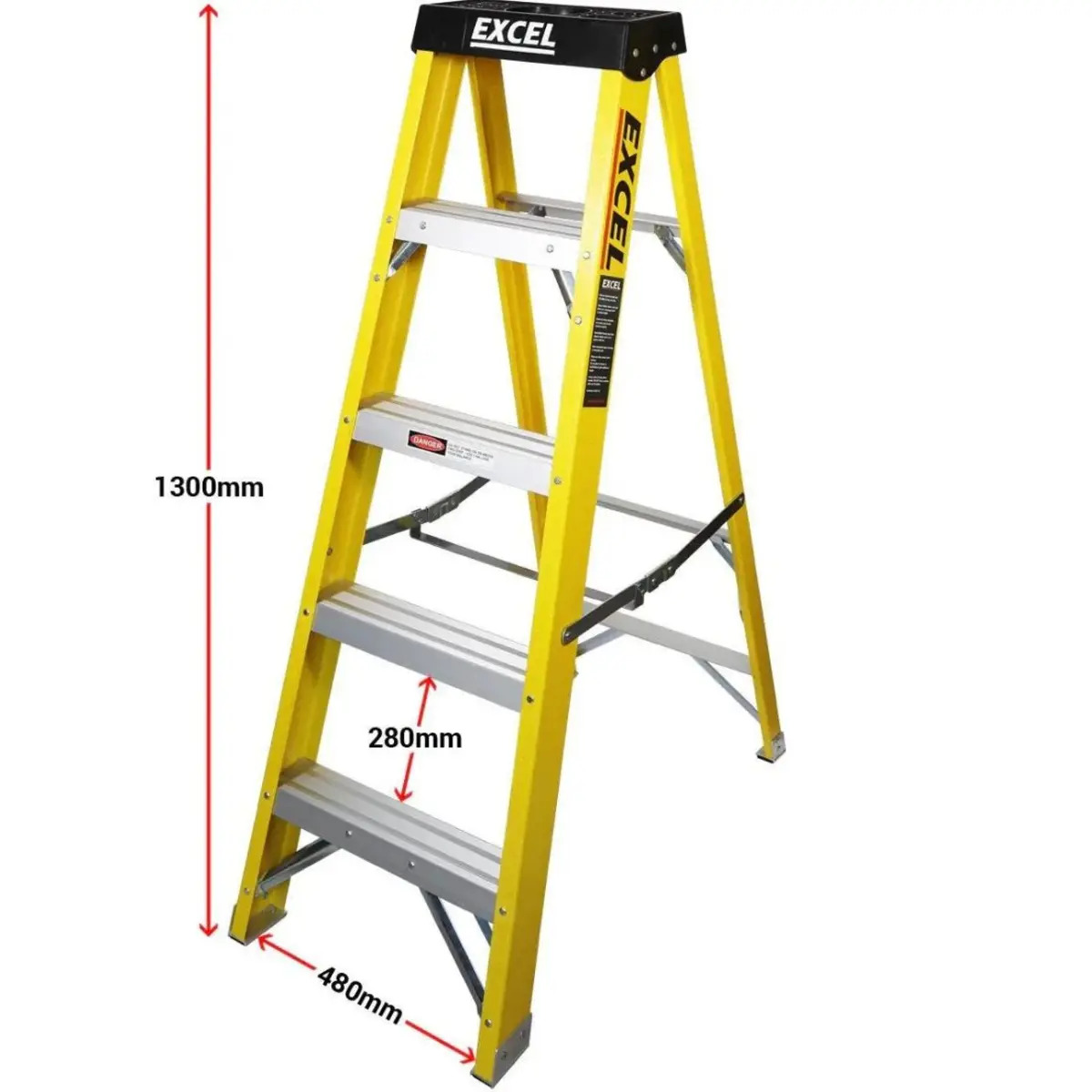 Excel Electricians Fibreglass Step Ladder 4 Tread 1.3m Heavy Duty