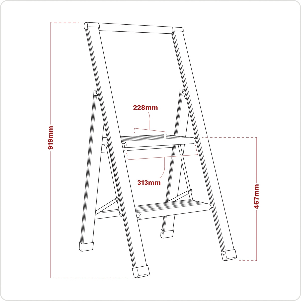 - Features large steps fitted with anti-slip rubber inserts and a large top step for added stability when working at height.