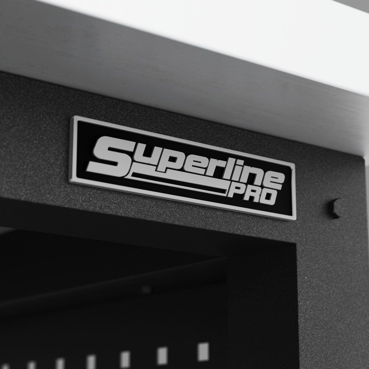 - PEGBOARD DESIGN - Perforated back panel designed as a pegboard for quick and easy-access to workshop tools.