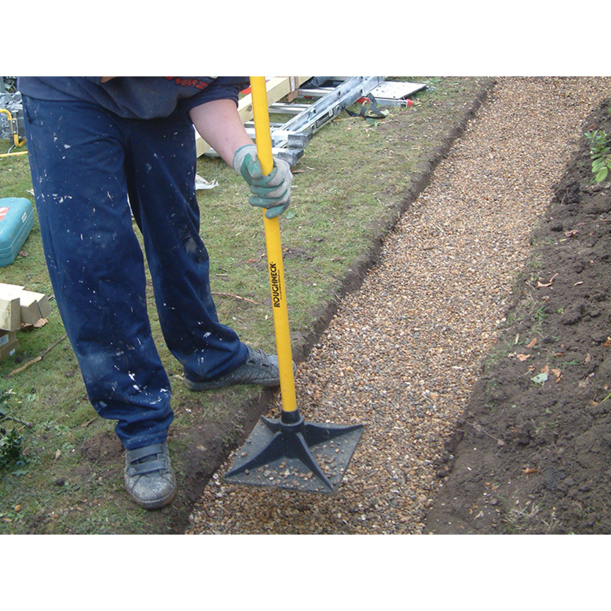 The Roughneck Trenching Tamper has a reinforced cast iron head with a perfectly flat face. They have strong but lightweight fibreglass handles with soft cushion grip for comfort.