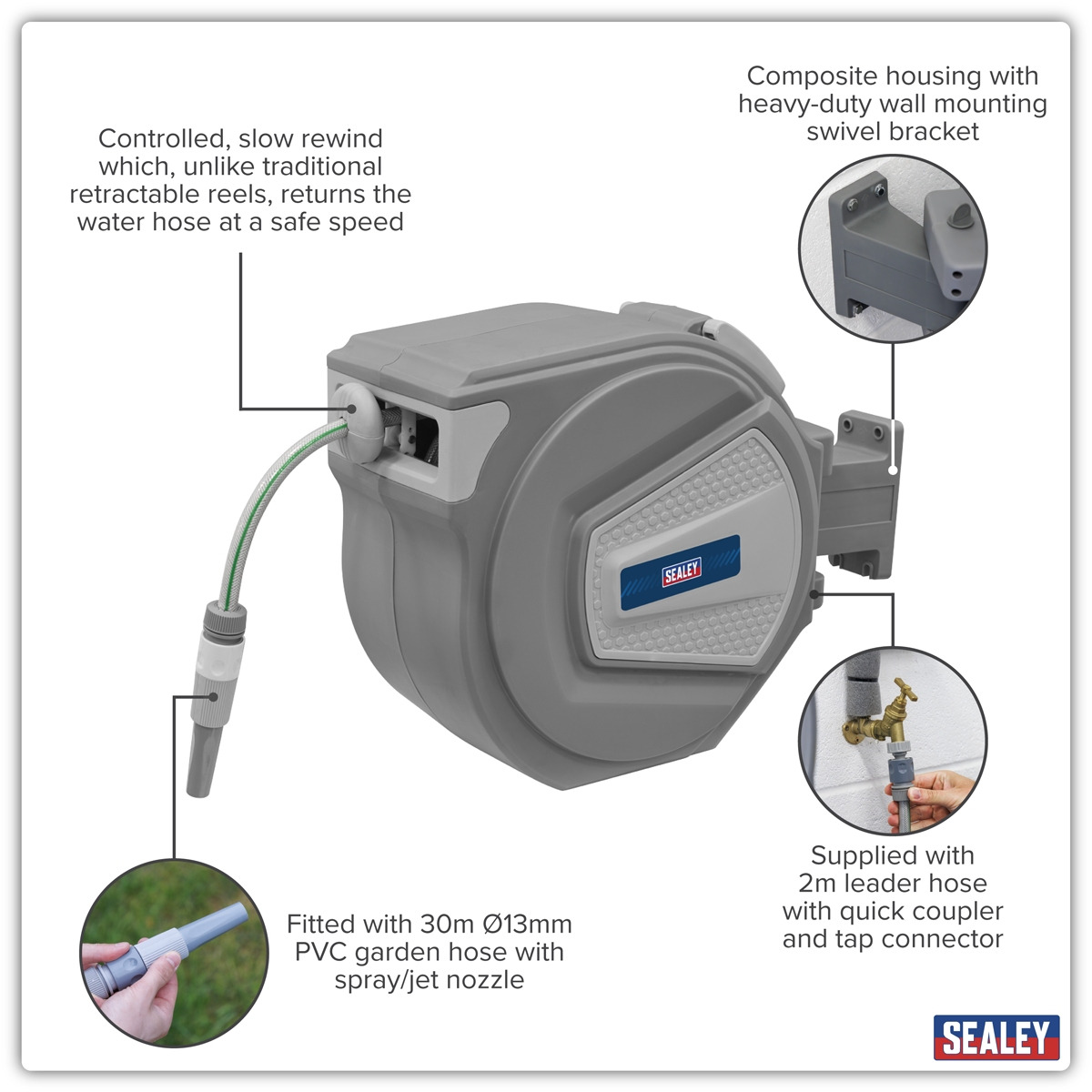Sealey RWH30 Auto-Rewind Control Garden Hose Reel 30m