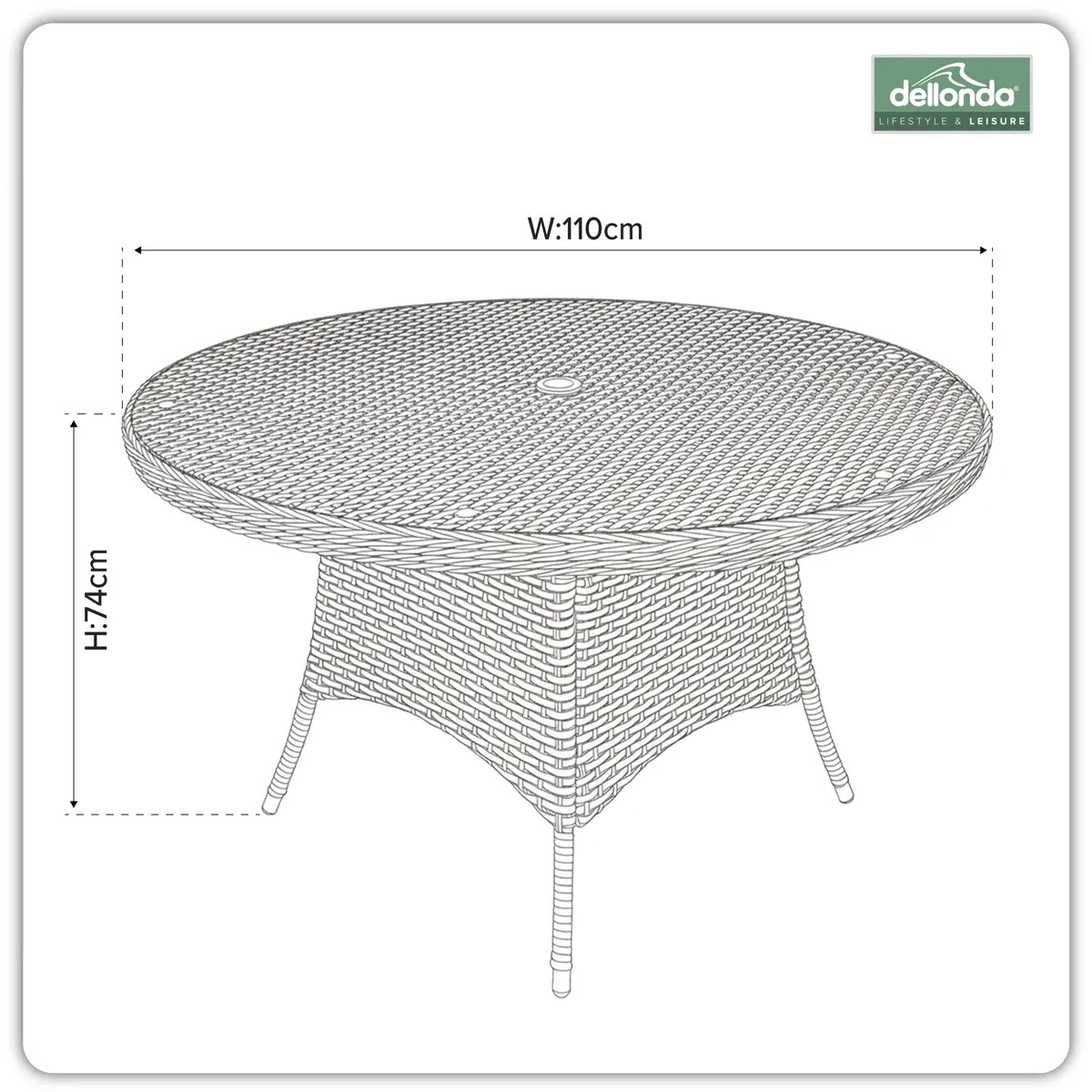 - DIMENSIONS (Ø x H) Ø110 x 74cm, Parasol Hole: Ø4.2cm.