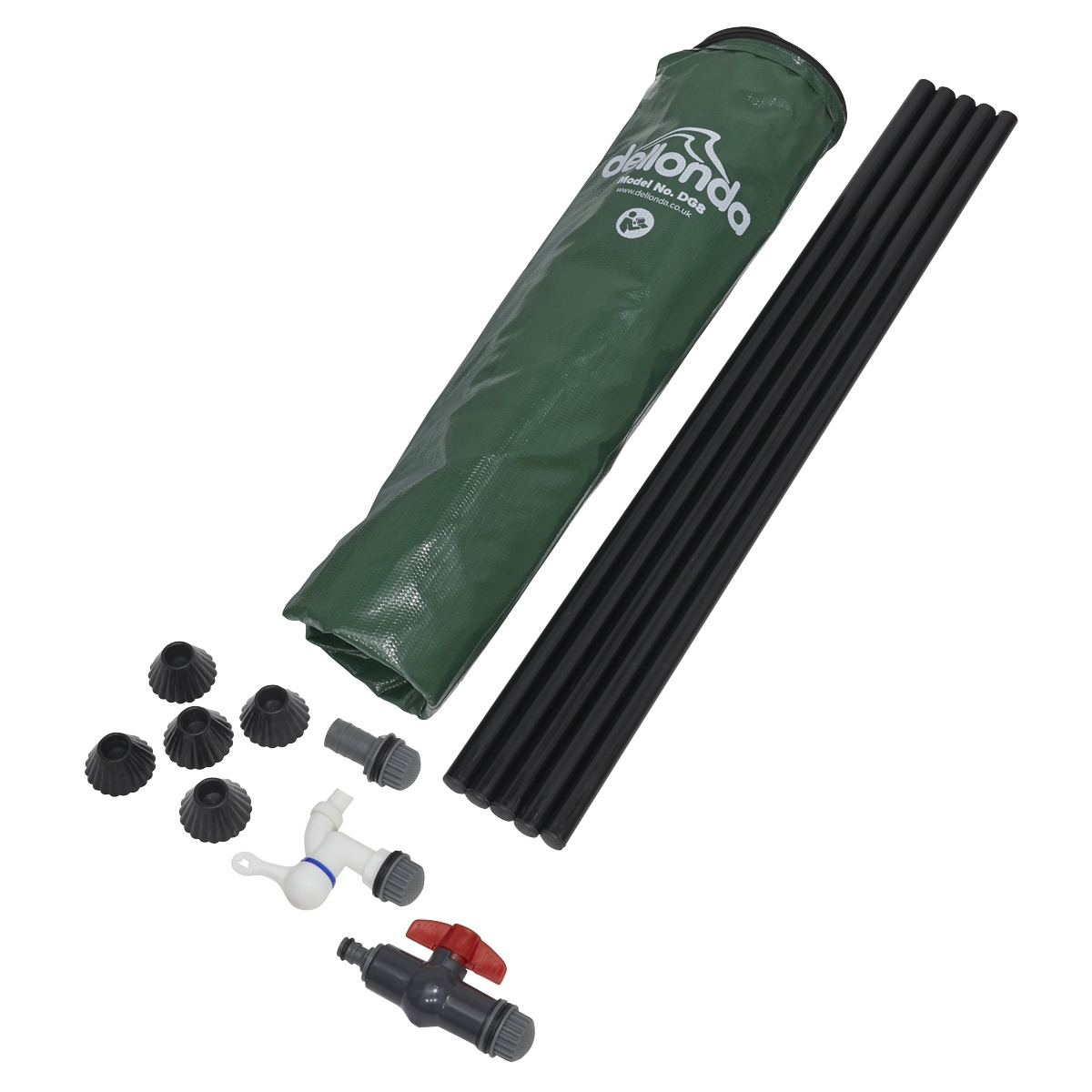 ECO-FRIENDLY - 100L Water barrel for collecting rain water from rooftop gutters. COMPACT & PRACTICAL - Folds flat into a compact size when not in use for easy transport and storage. SOLID CONSTRUCTION - Includes six standing poles, fitted with adjustable feet to provide good stability. EFFORTLESS INSTALLATION - No tools needed. Zipped lid fitted at the top to keep the water clean after collection. INCLUDES - Water tank is fitted with a drain tap, thread filter, 3/4" ABS outlet valve, 1/2" thread insert, thread plug and overflow/inlet fitting. DIMENSIONS - Overall tank size: Ø40 x 78cm. Lid collection filter: Ø7.5cm.