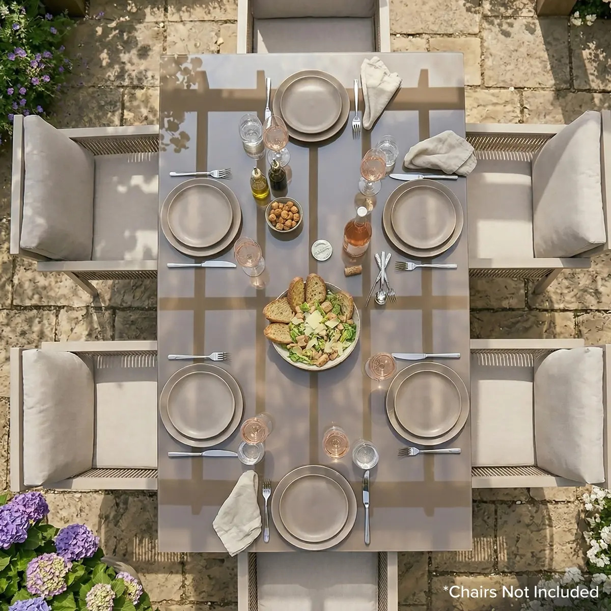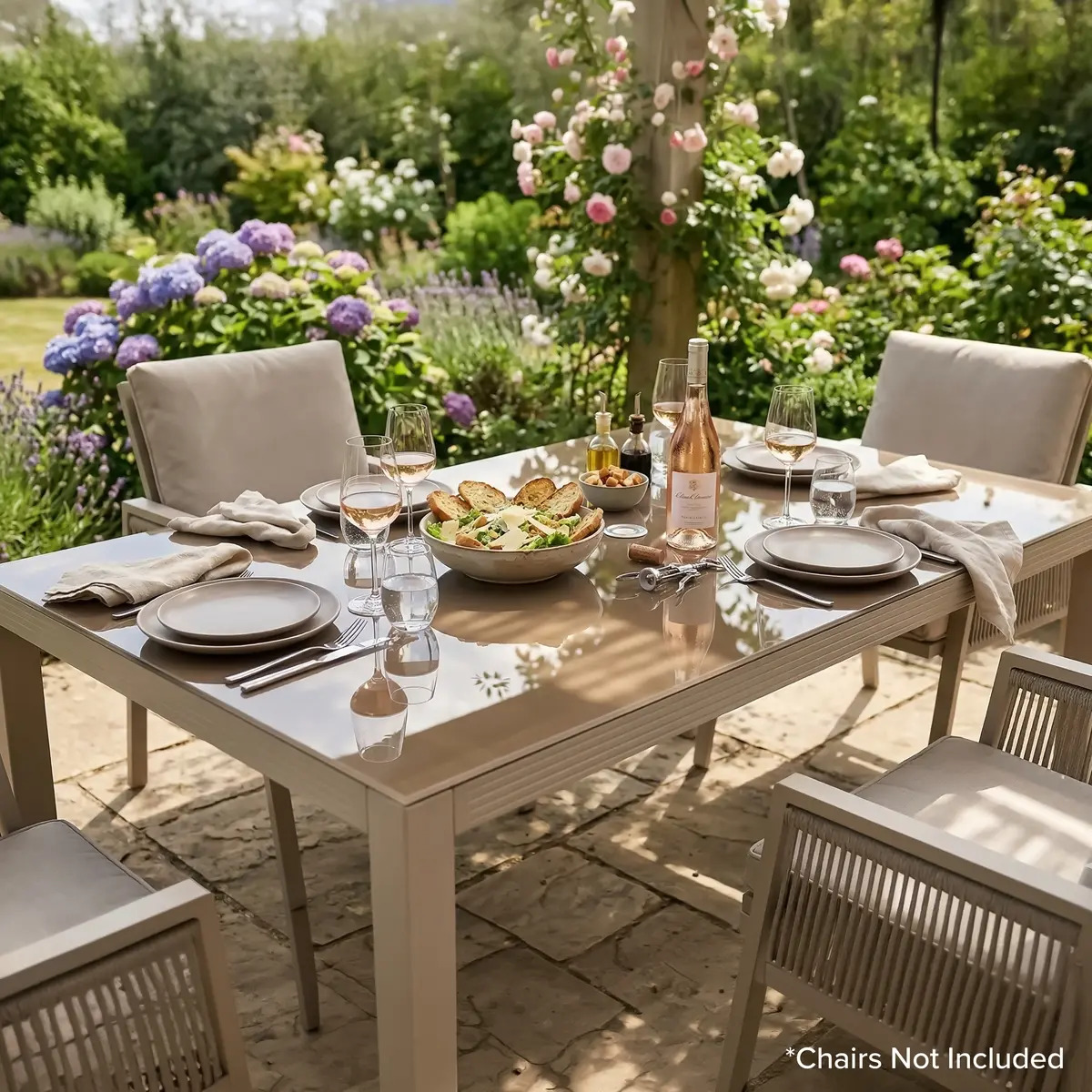 PERFECT OUTDOOR SEATING - These comfortable chairs are ideal for having dinner, reading and relaxing with your family and friends. STYLISH DESIGN - Stylish and contemporary finish, with a 5mm tempered glass top and parasol hole. WEATHER-RESISTANT - Manufactured using powder coated rust proof aluminium to keep your table safe in the rain. DIMENSIONS (W x D x H) - Table 152.5 x 96 x 74cm. EASY TO ASSEMBLE - No complicated instructions. 3 YEAR GUARANTEE* - For your peace of mind.