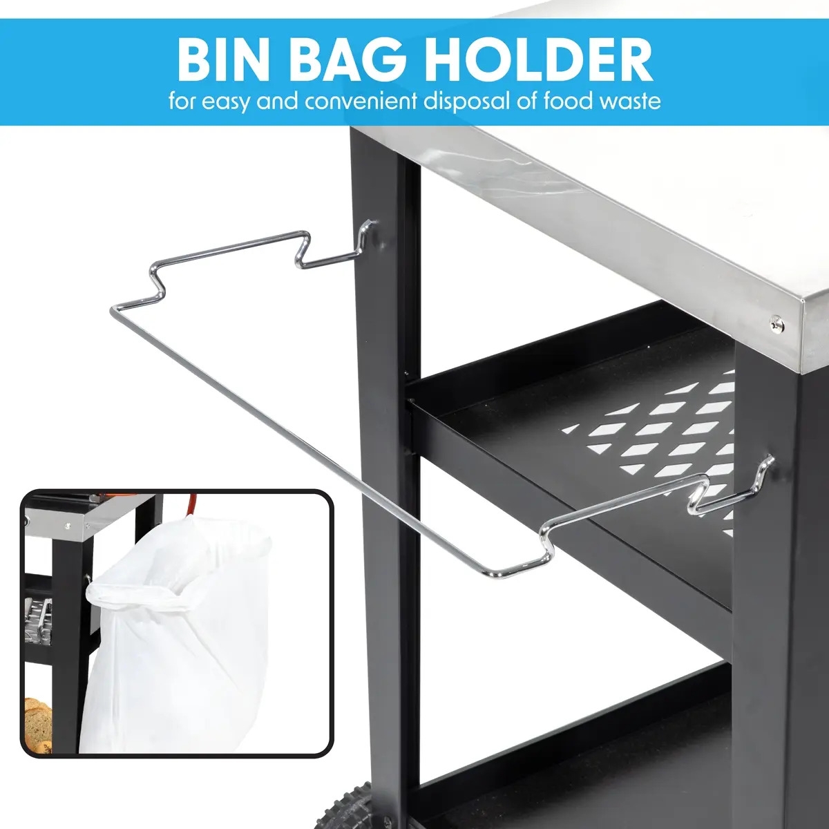 - PERFECT COOKING COMPANION - The BBQ trolley is at a convenient height for easy cooking using plancha grills or pizza ovens on top while it is also the perfect accompaniment for your standard BBQ.