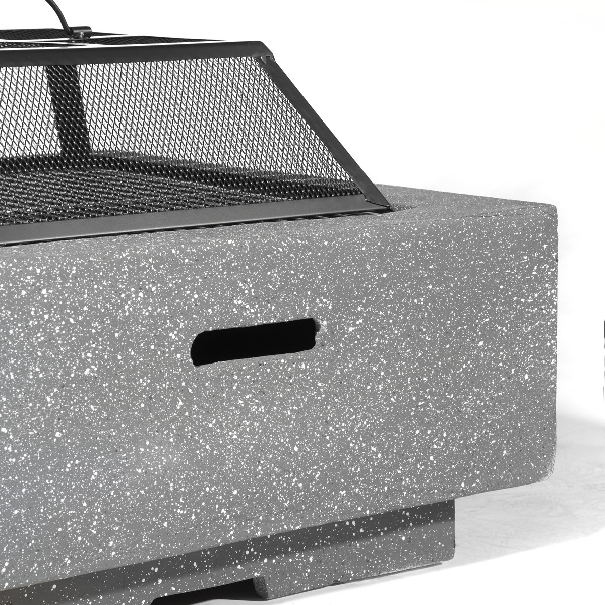 DURABLE CONSTRUCTION - The fire pit is made from MgO (Magnesium Oxide), a weather resistant material which gives you a modern concrete look for your garden. It is built to withstand the elements as it is rust resistant, UV resistant and frost resistant. EASY TO MOVE - Being made of MgO instead of a more traditional metal material this fire pit is much lighter and easier to move around your garden and comes with handle holes. VERSATILE USES - Use it like a BBQ, place your food on the chrome grill rack above the fire logs and get ready for quick tasty food. MULTIPLE FUEL OPTIONS - Use with Charcoal or Firewood. SUPPLIED WITH - Safety mesh and poker. DIMENSIONS (W x D x H): 64 x 64 x 45cm.