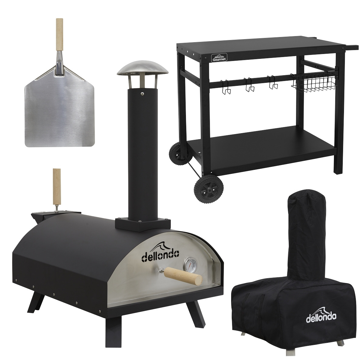 Sealey DG258 Dellonda Wood-Fired Pizza Oven, Pizza Peel, Cover & Plancha Trolley 14" - Black