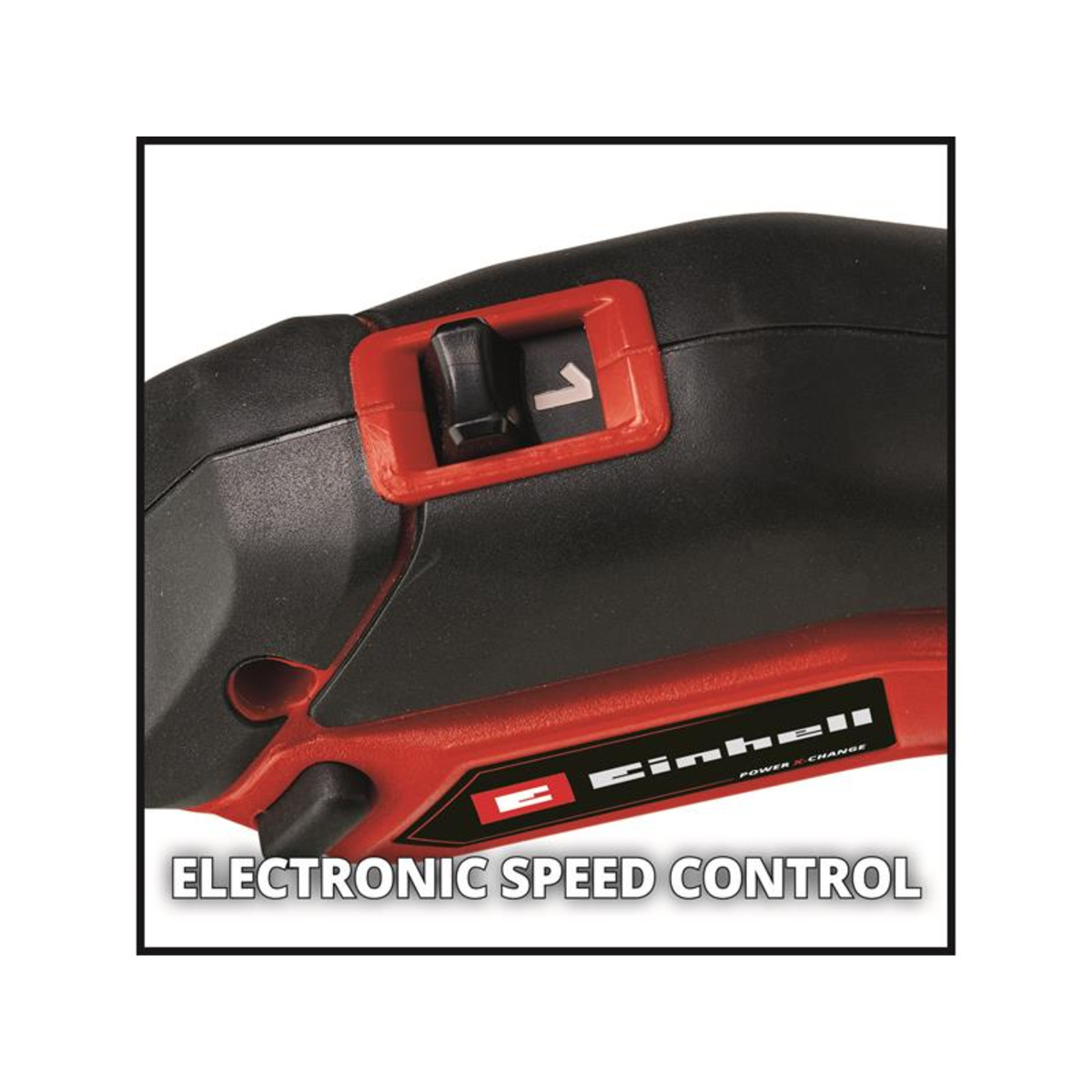 The Einhell GP-CT 36/35 Li BL-Solo Power X-Change Lawn Trimmer is powered by the Einhell PurePOWER brushless motor. This brushless motor offers more power and longer running time than conventional carbon brush motors. After online registration, there is a 10-year warranty on the brushless motor. Whether trimming edge strips or shaping the lawn, the cordless lawn trimmer works quickly and powerfully thanks to 2-stage speed control.